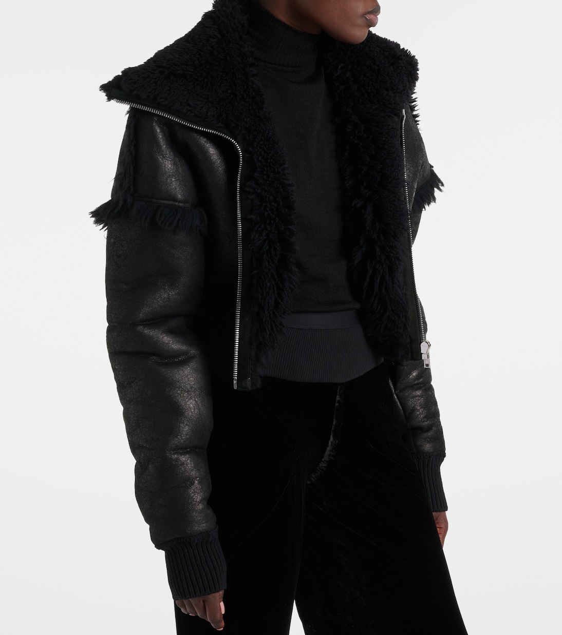 Рик Оуэнс, которого метко прозвали Властелином тьмы, привносит готическое и индустриальное вдохновение в авангардный дизайн. Куртка Flight выполнена из кожи с отделкой из мягкой овчины и имеет очень высокий вырез.