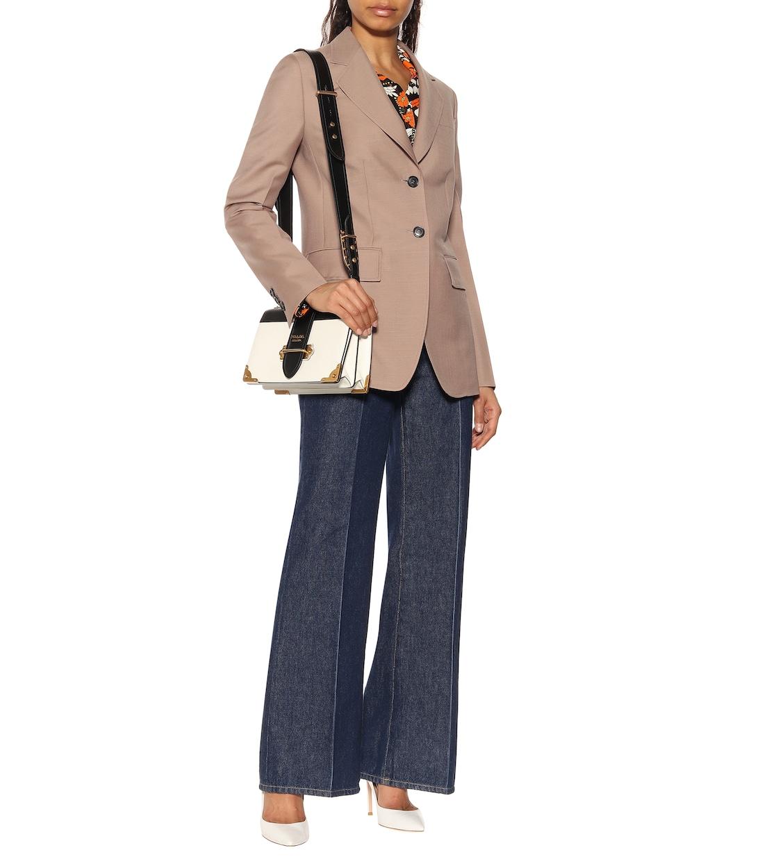 Роскошный пиджак Prada из шерсти и мохера - образец простоты и практичности, он отличается вневременным свободным кроем. Этот однобортный пиджак, изготовленный в Италии и представленный в бежевом цвете, отличается вытачками для придания формы и элегантного строгого вида. Спереди расположены элегантные накладные карманы. Сочетайте его с изящными бежевыми брюками для создания абсолютной элегантности.