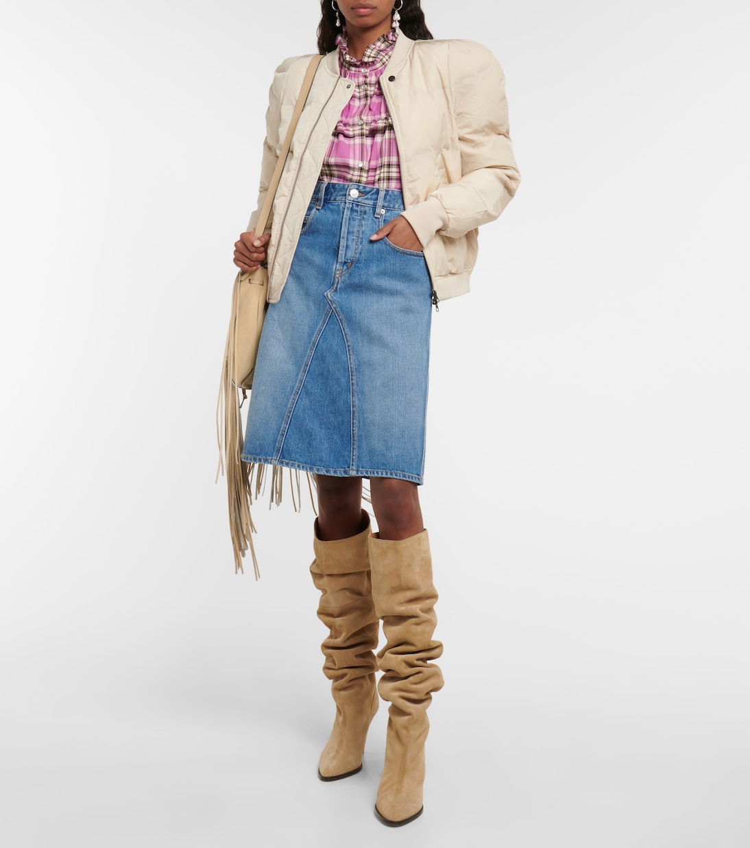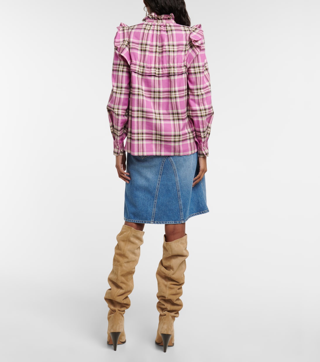 Рубашка Idety на пуговицах от Isabel Marant, Étoile выполнена из чистого хлопка с клетчатым принтом. Объемные рукава и оборки на воротнике, лифе и плечах.