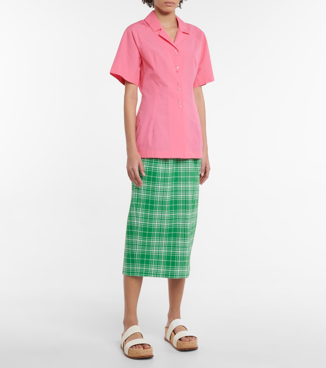 Рубашка Maremar от Sportmax изготовлена из хлопка, имеет застежку на пуговицы спереди и сборку на талии.