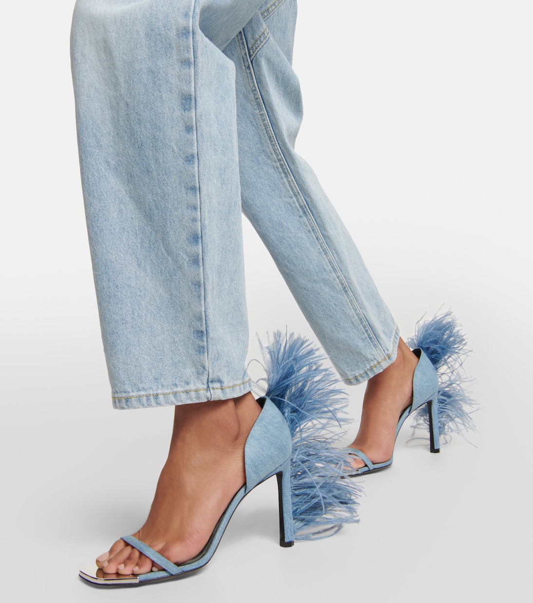 Сандалии Amazona являются частью первого сотрудничества Area и Sergio Rossi. Они изготовлены из денима с роскошной отделкой из перьев сзади. Они оснащены металлическими носками с выгравированными едва заметными буквами логотипа.