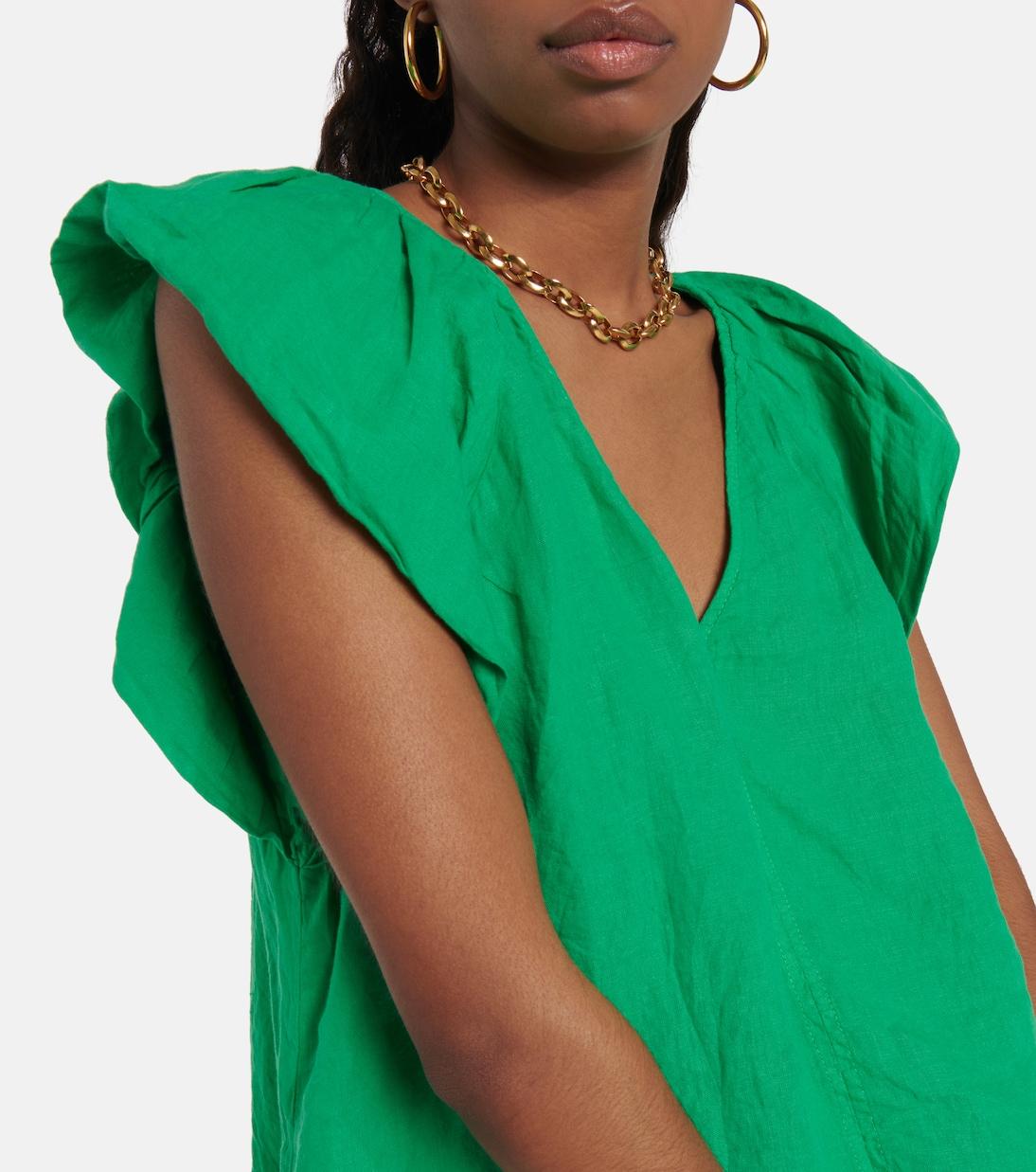 Свободный крой - основа Velvet, что особенно заметно в топе Ava. Этот свободный фасон, выполненный из мягкого льна цвета нефрит, отличается V-образным вырезом и короткими рукавами-крылышками.