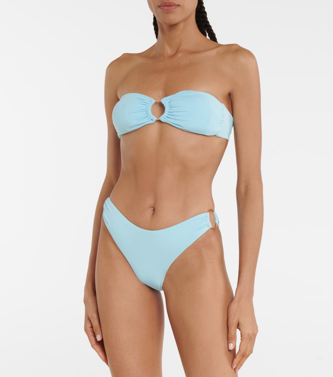 Синие плавки-бикини Evita от Melissa Odabash дополнены скрытыми кольцами по бокам с низкой посадкой для создания выразительного эффекта. Они обеспечивают минимальную застежку и идеально сочетаются с топом-бандо Evita.