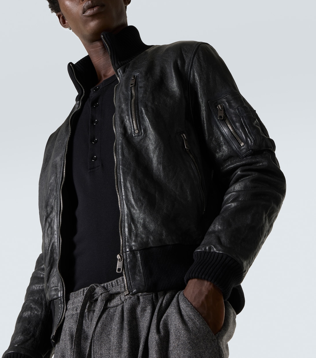 Сицилийская культура лежит в основе эстетики Dolce&Gabbana, которая считает большинство своих смелых стилей итальянским наследием. Эта куртка-бомбер изготовлена из состаренной кожи наппа с ребристой отделкой и имеет водолазку.