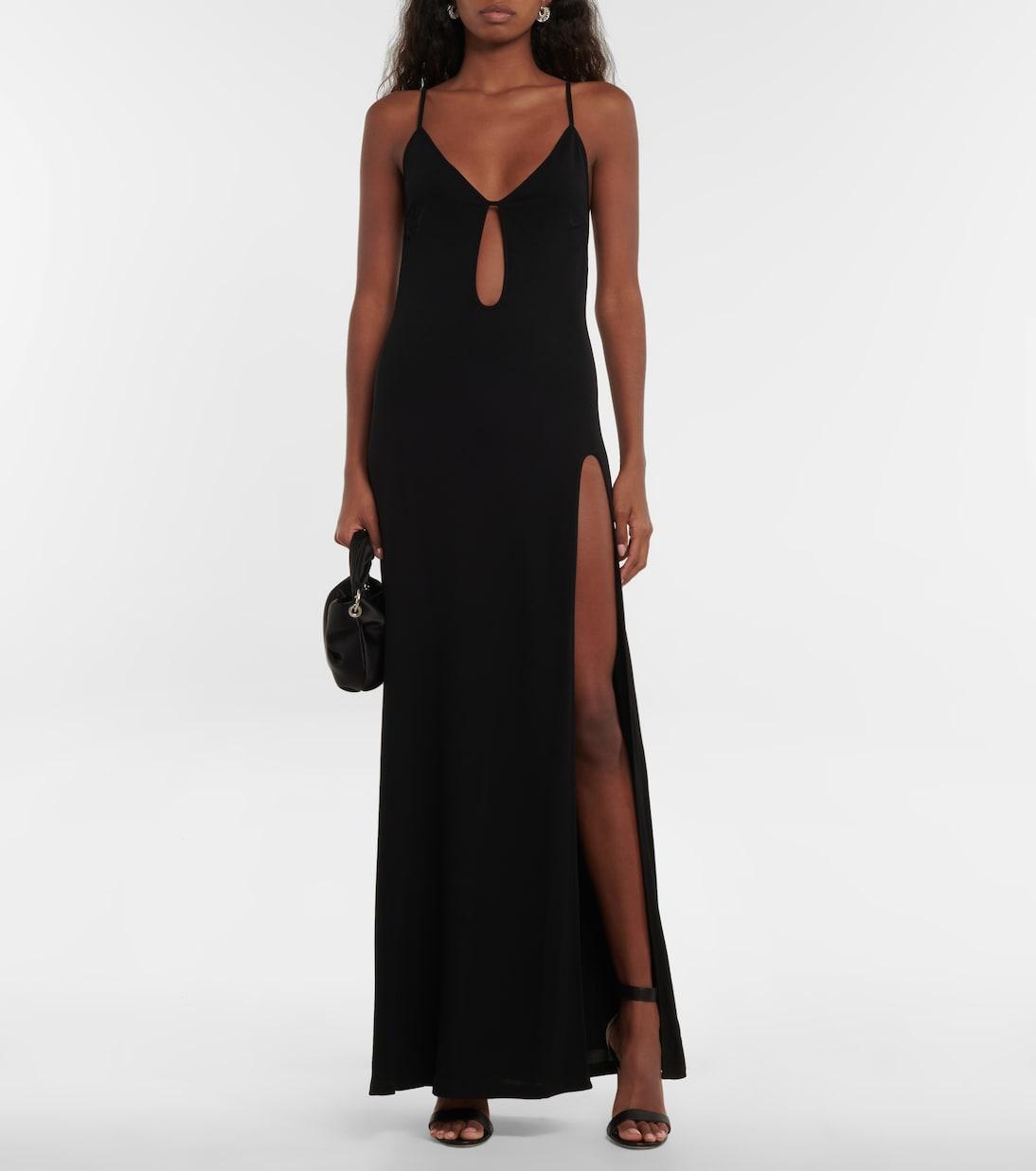 Соблазнительные образы для вечернего времени года начинаются с этого трикотажного макси-платья от Зейнеп Арчай. Изысканное, но в то же время гламурное изделие с вырезом-замочной скважиной, глубоким вырезом на спине и высоким боковым разрезом до бедра.
