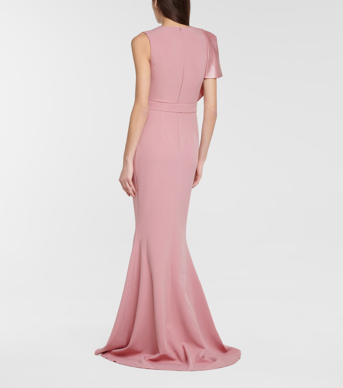 Создайте женственный образ с этим розовым платьем от Safiyaa. Платье выполнено из шерстяного крепа, который достаточно структурирован, чтобы поддерживать четкий силуэт. Платье без рукавов украшено бантом с загнутыми краями и легким металлическим блеском. Шлейф на юбке завершает дизайн, придавая нотку вечернего драматизма.