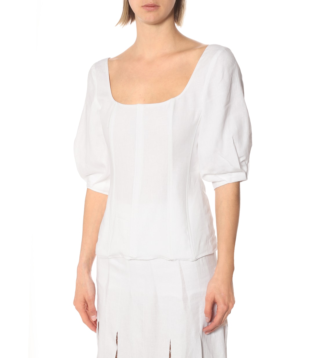 Создайте непринужденный летний образ с такими вещами, как белый топ Hyades с показа мод Габриэлы Херст весны 2020 года. Сделано в Италии из льна, силуэт с квадратным вырезом, рукавами-буфами и утягивающей талией.