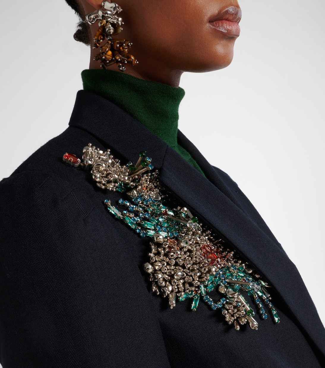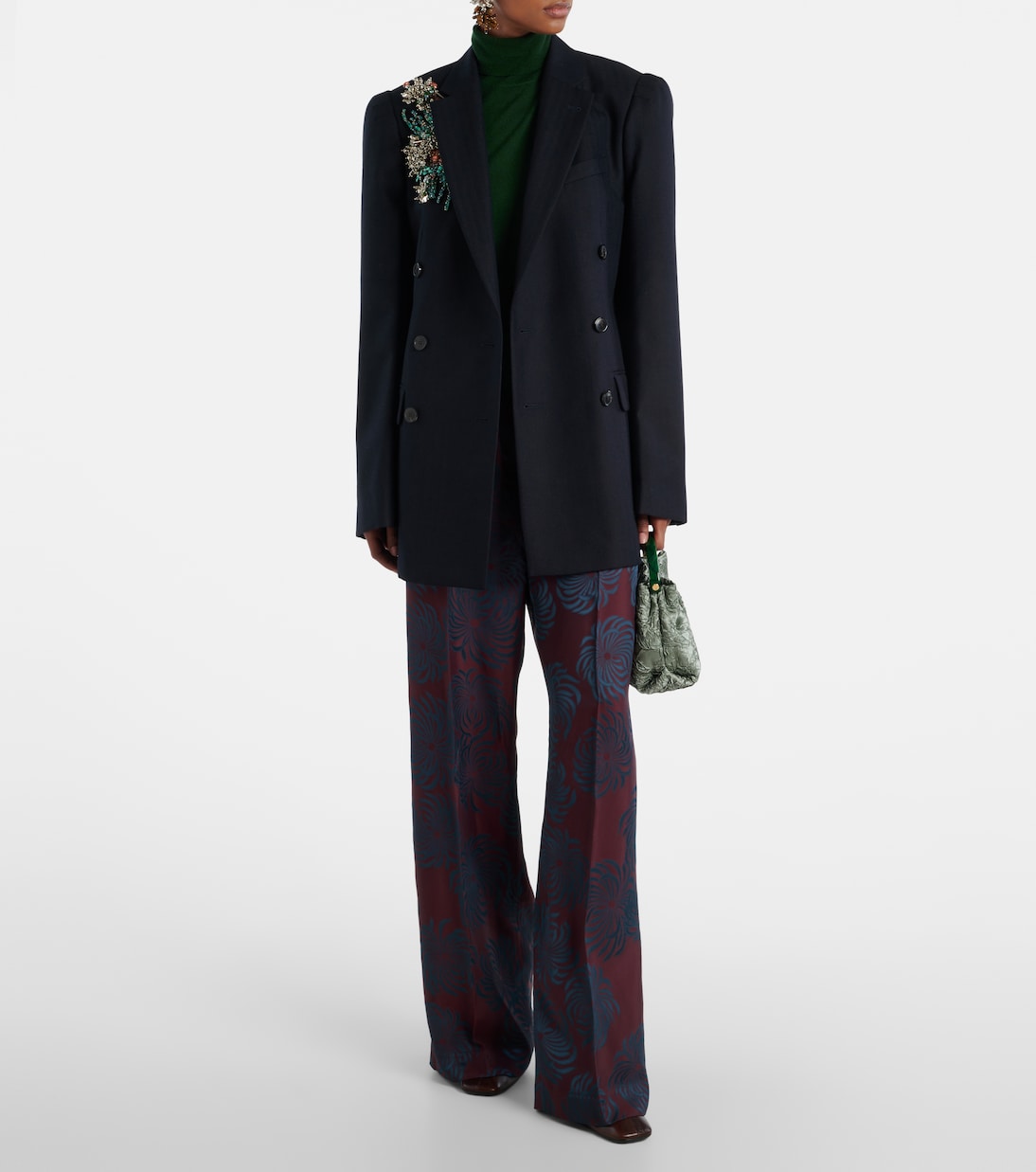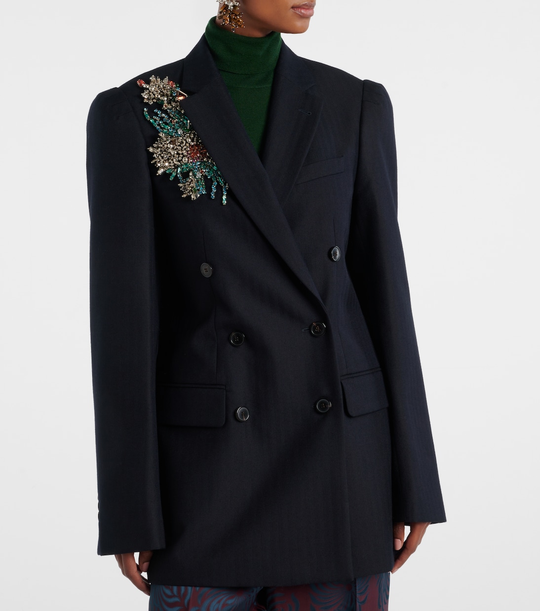 Сочетая поэтическую чувствительность с интеллектуальным кроем, Дрис Ван Нотен создает стили, которые всегда уникальны. Этот двубортный пиджак, выполненный из шерсти, украшен мерцающей отделкой, структурированными подплечниками, карманами с клапанами и заостренными лацканами.