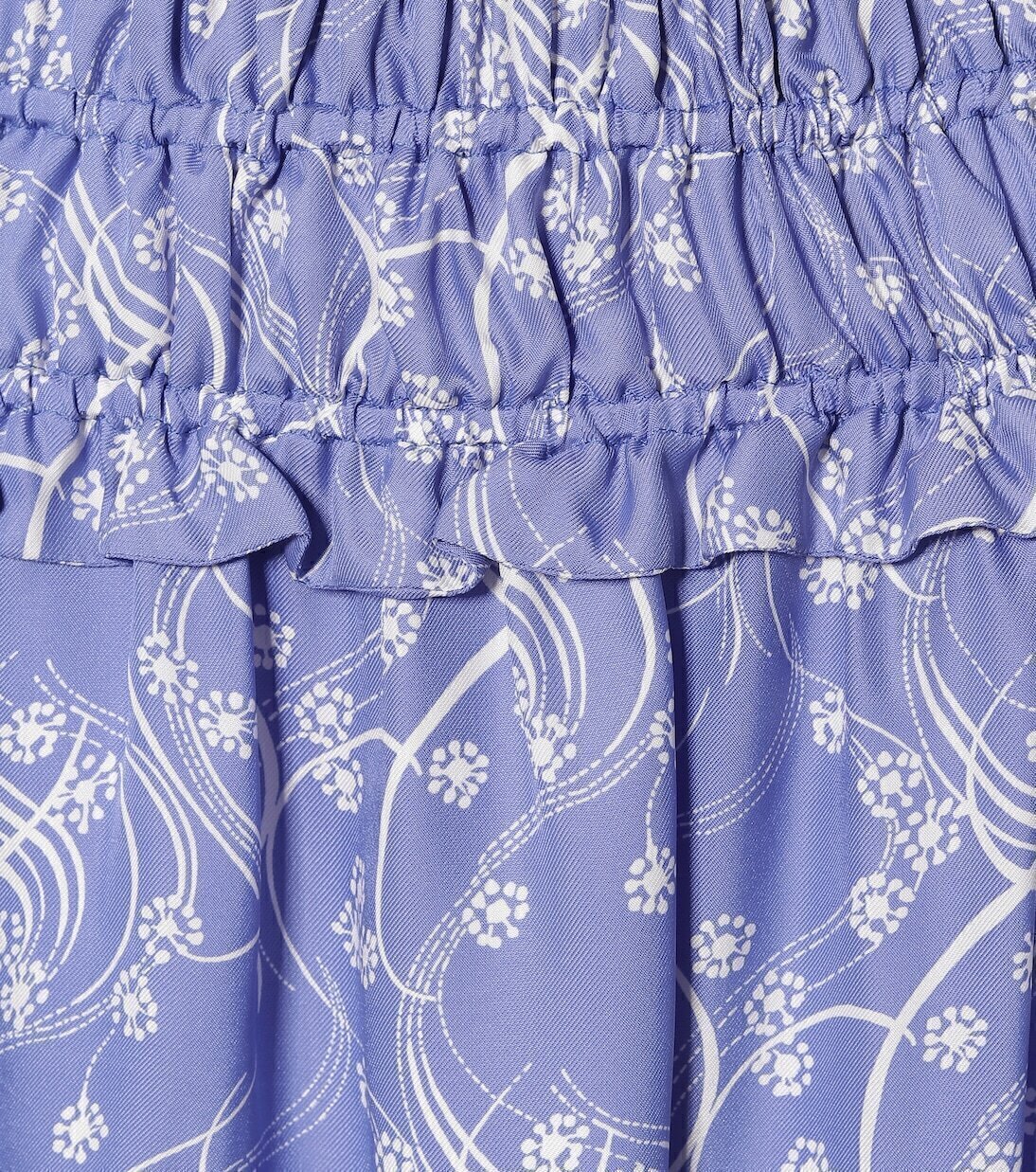Спокойно оденьтесь в теплую погоду в этой светло-голубой мини-юбке от KENZO. Юбка выполнена из легкого шелкового смесового материала с оборками и присборенной талией. Ее женственный силуэт полон индивидуальности благодаря белому принту, вдохновленному морскими волнами. Носите свой в выходные с футболкой с логотипом.