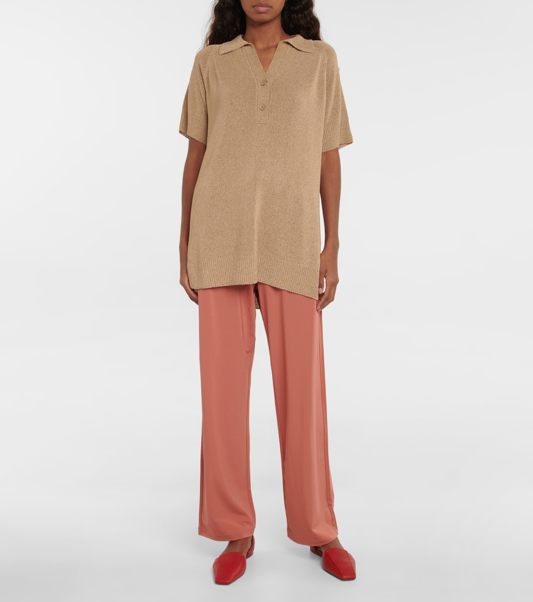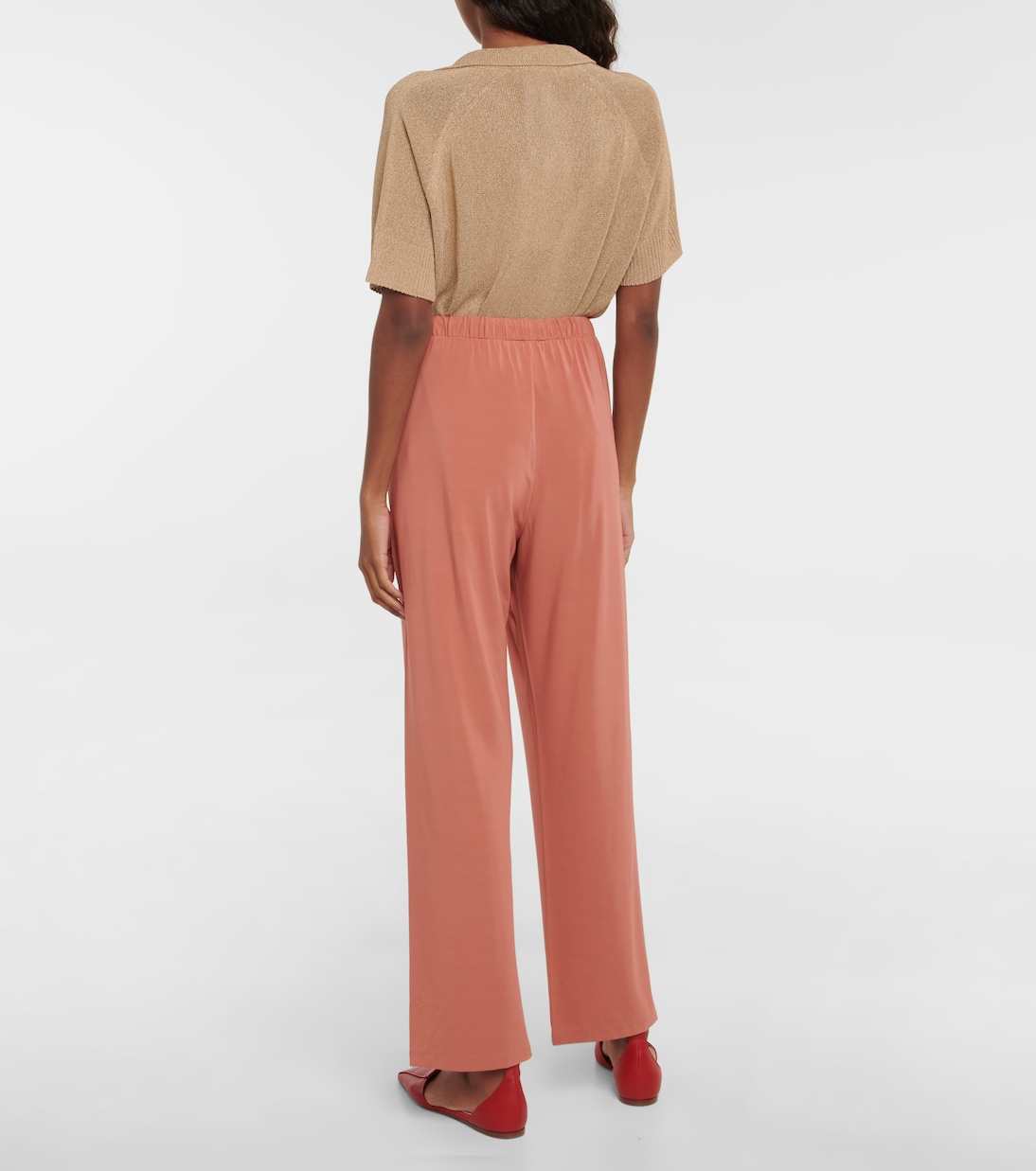 Спортивные брюки Orbita из коллекции Leisure от Max Mara станут вашим незаменимым помощником для тех дней, когда вы сидите дома. Они сшиты из обтягивающего коричневого трикотажа с удобной талией на шнурке и широкими штанинами.