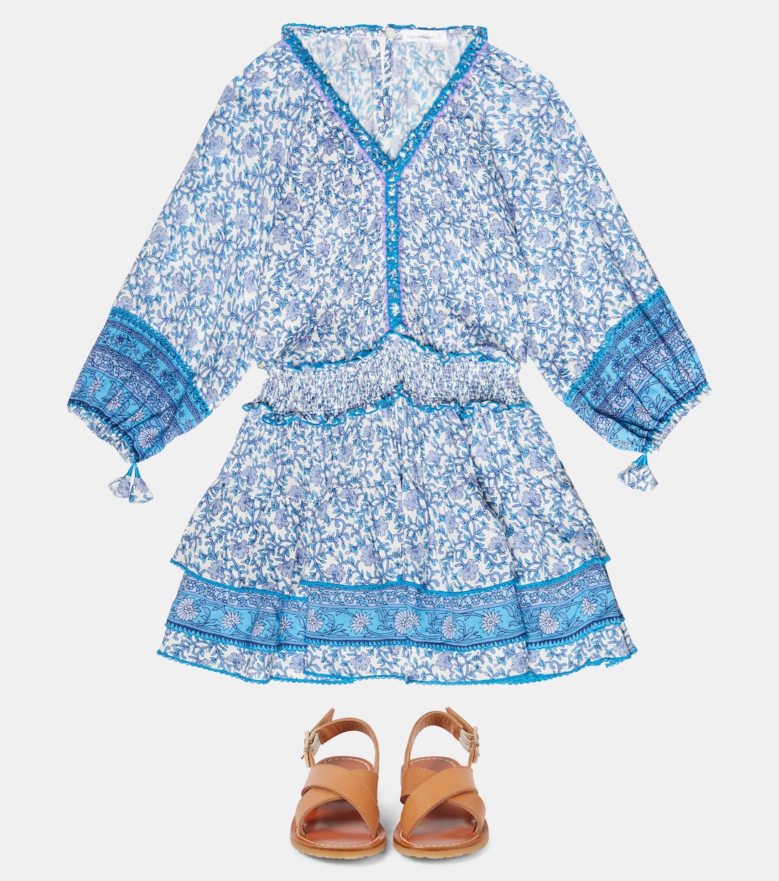 Стиль мини-ми начинается с Poupette St Barth Kids. Синее платье Ariel с удобной присборенной талией и манжетами с кисточками, которые обязательно вам понравятся.