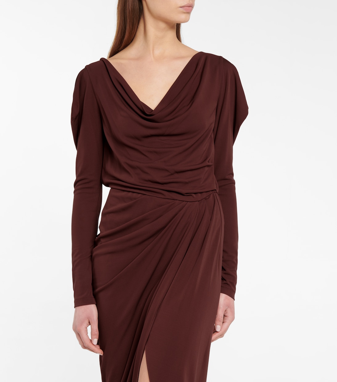 Струящаяся драпировка миди-платья Shoshana идеально отражает неподражаемое понимание Altuzarra женских форм. Облегающий крой подчеркивает естественные изгибы фигуры, а юбка-запах позволяет изящно продемонстрировать тело во время движения. Дополните образ туфлями-лодочками с завязкой на щиколотке, общаясь с друзьями.