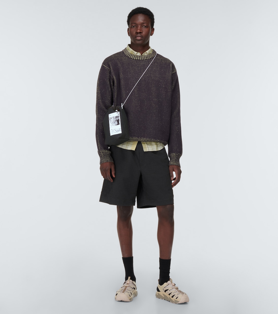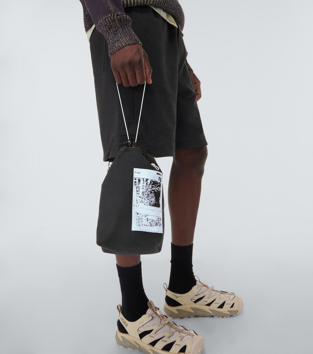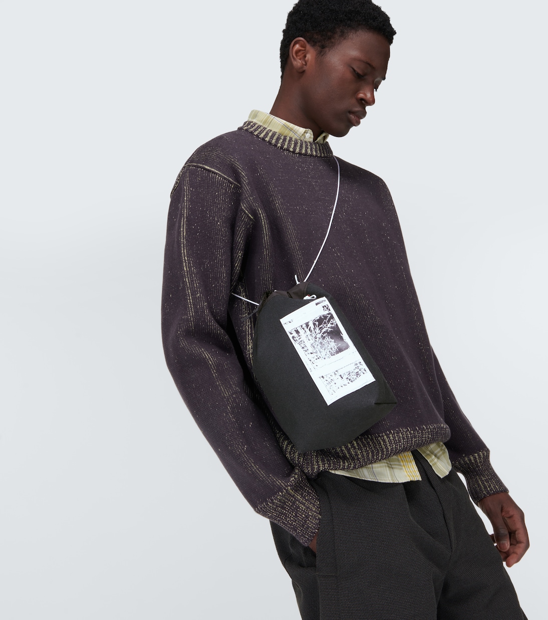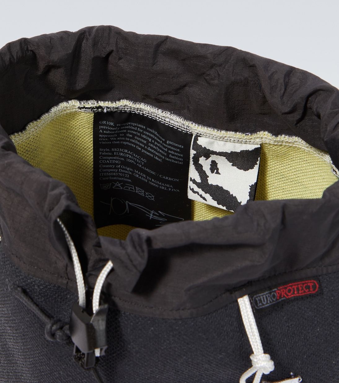 Сумка через плечо Book Case Small от GR10K изготовлена из нераспроданного огнестойкого материала Europrotect, состоящего из арамидного трикотажного полотна с углеродным покрытием, и оснащена регулируемым верхом на шнурке.
