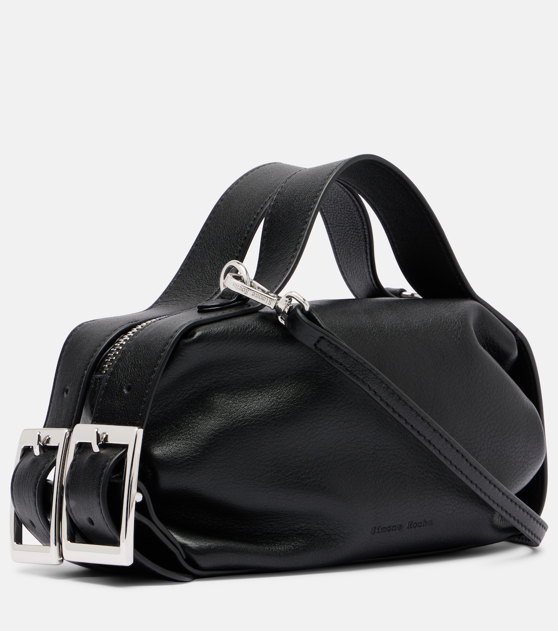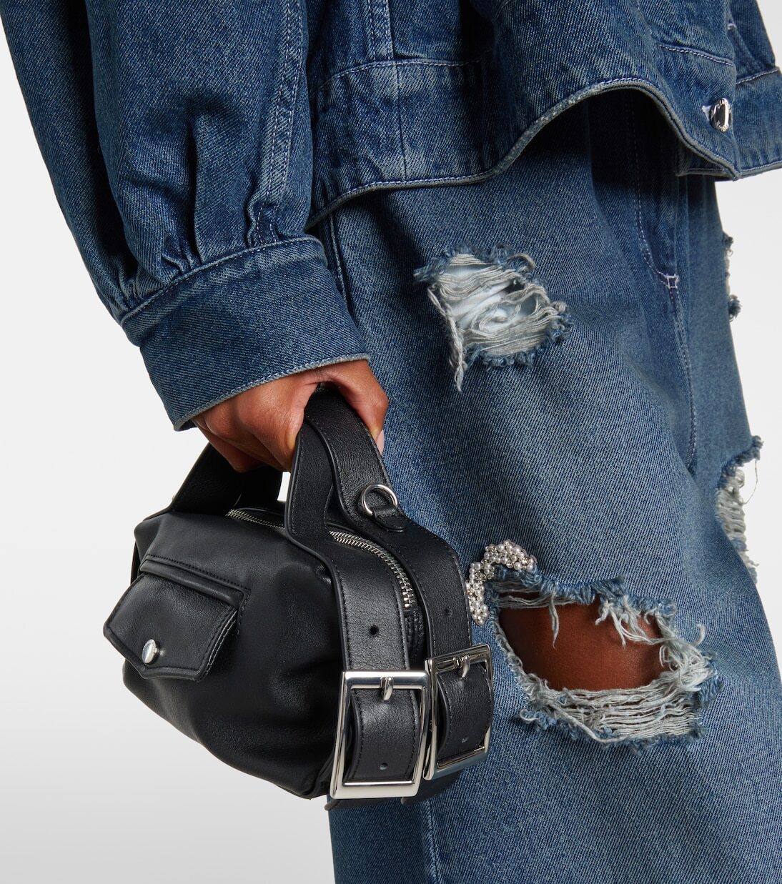 Сумка-тоут Biker Belt Mini воплощает байкерский стиль благодаря своему черному кожаному корпусу и серебристой фурнитуре. Компактную конструкцию можно носить за верхнюю ручку или на плечевом ремне.