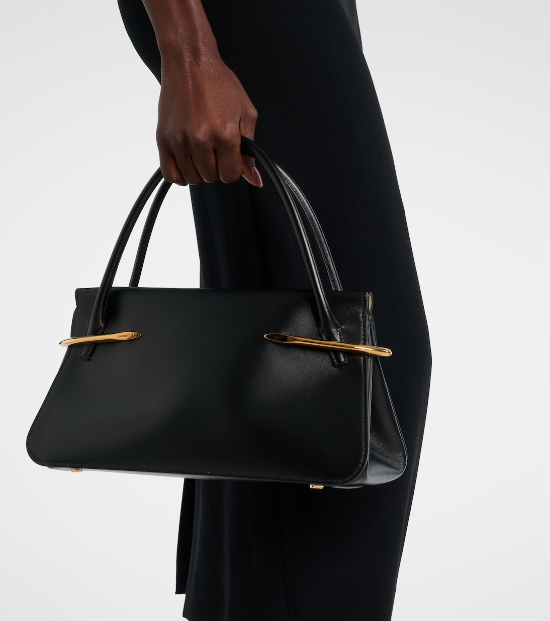 Сумка-тоут Pinch Medium от Givenchy изготовлена в Италии из гладкой кожи с магнитной застежкой. Она имеет ручки сверху, съемный плечевой ремень и одно отделение с внутренним карманом-прорезью. В комплект входит подходящее зеркало.
