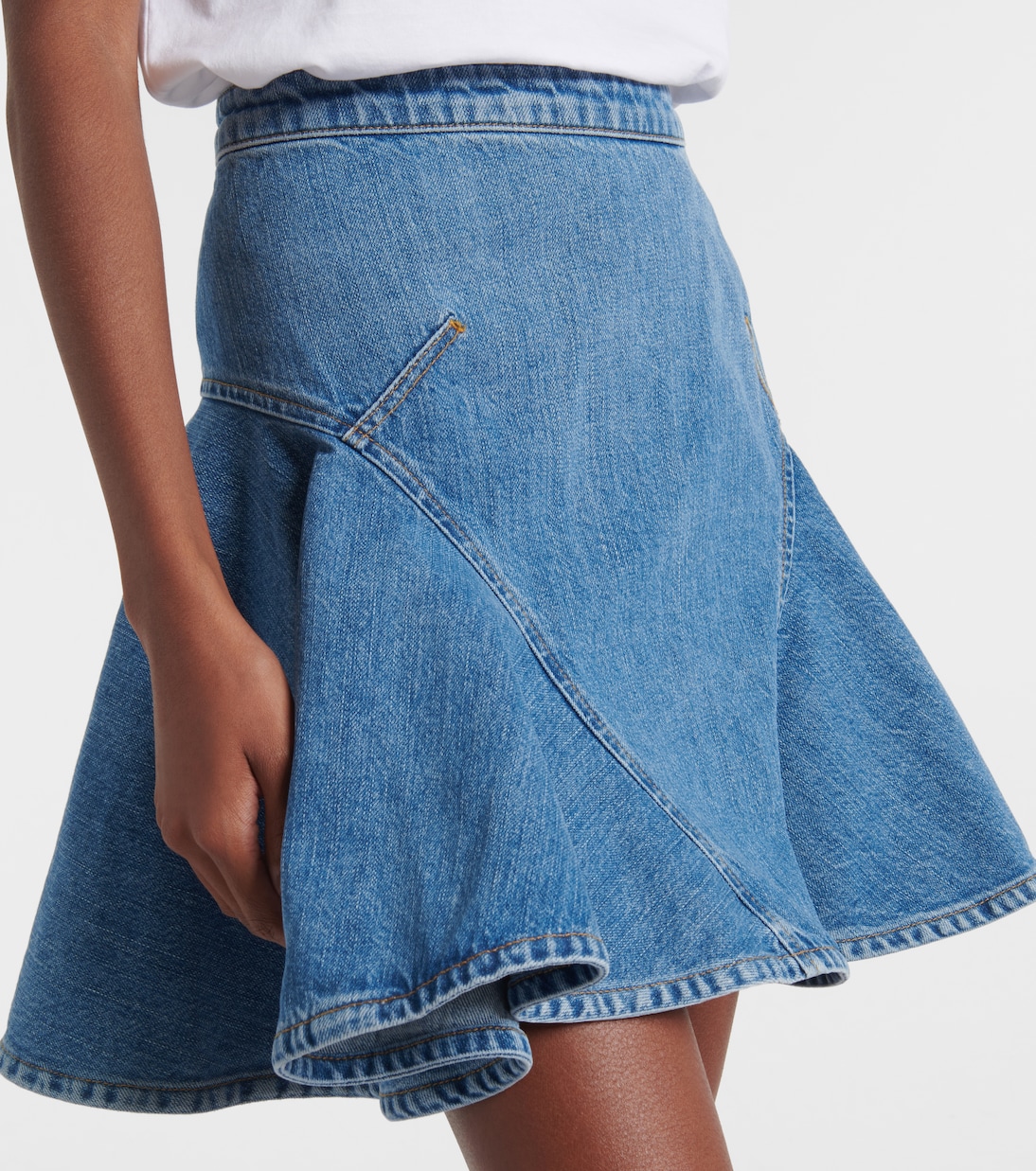 Точные и неподвластные времени дизайны Givenchy перекликаются с элегантными силуэтами первых лет существования бренда. Эта джинсовая юбка украшена оборками по подолу и застегивается на молнию сзади.