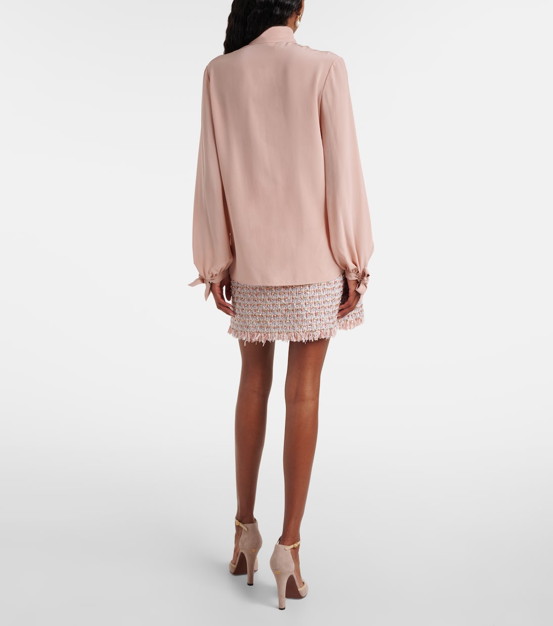 Украсьте свой гардероб этой рубашкой Valentino из шелкового крепа. Дизайн дополнен оборками на воротнике и манжетах, а также большим бантом с бахромой, придающим элегантному стилю причудливый штрих.