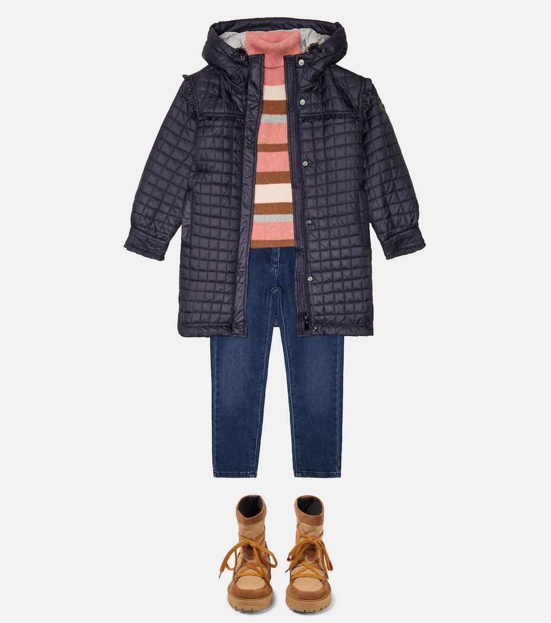 Укутайте своего малыша стильно в это очаровательное пальто с воланами от Il Gufo. Стеганый дизайн с потайной молнией спереди, мягкой трикотажной подкладкой и уютным капюшоном для дождливых дней.