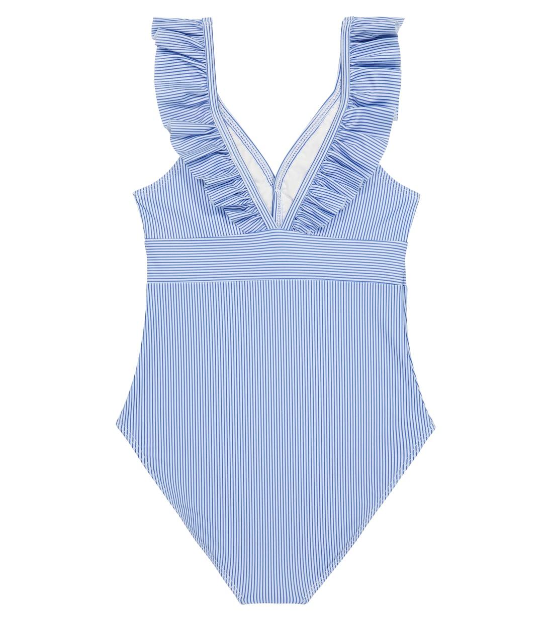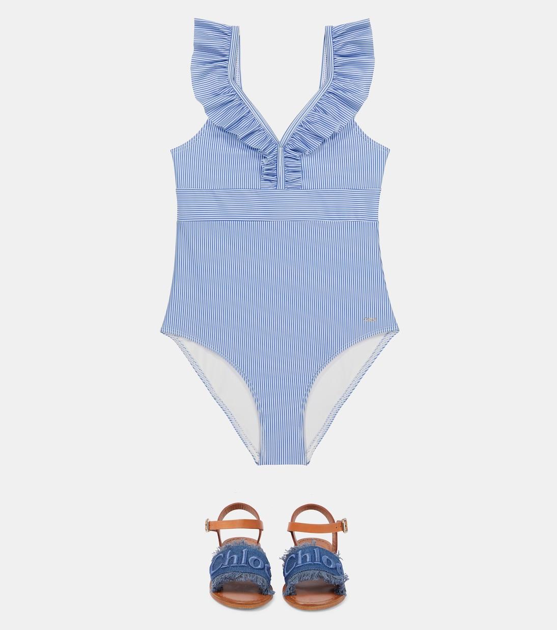 Упакуйте этот детский купальник Chloé для следующего похода в бассейн. Этот очаровательный дизайн с принтом в сине-белую полоску, V-образным вырезом и изящными бретельками с воланами.