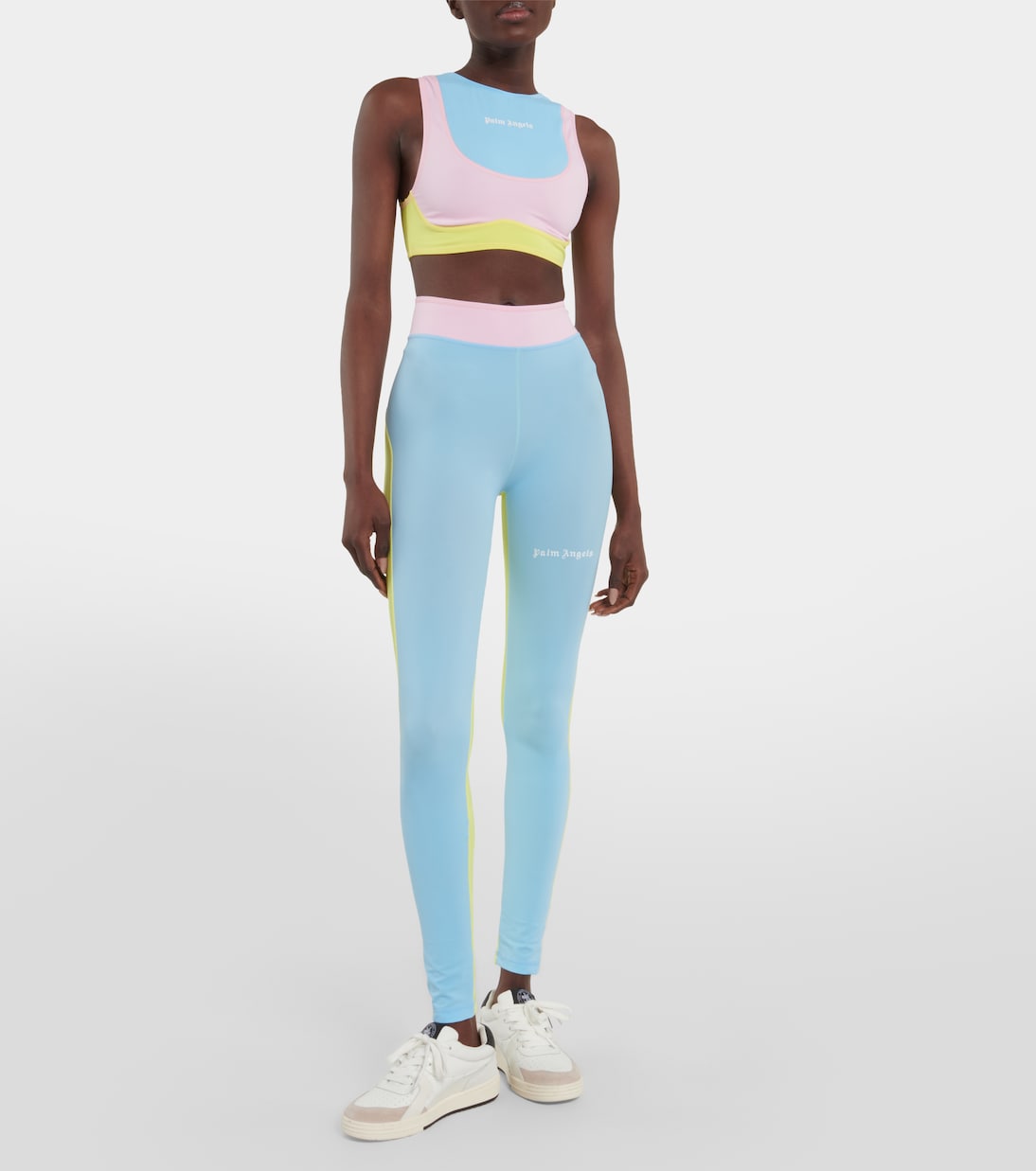 Усильте свой спортивный образ с помощью этих леггинсов от Palm Angels. Дизайн с цветовыми блоками выполнен из эластичного материала, подходящего для активного отдыха, и отличается высокой талией. Дополните комплект соответствующим спортивным бюстгальтером.
