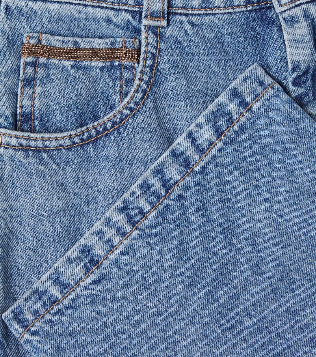Фирменная деталь Brunello Cucinelli - бусины Monili - наносятся вручную на каждое изделие и изготавливаются из граненой латуни без содержания никеля для создания сверкающего эффекта. Это украшение добавляет шикарный, отличительный штрих этим джинсам Brunello Cucinelli Kids.