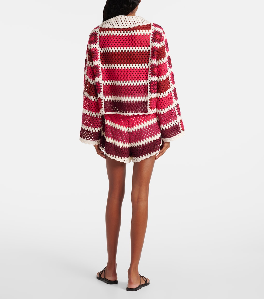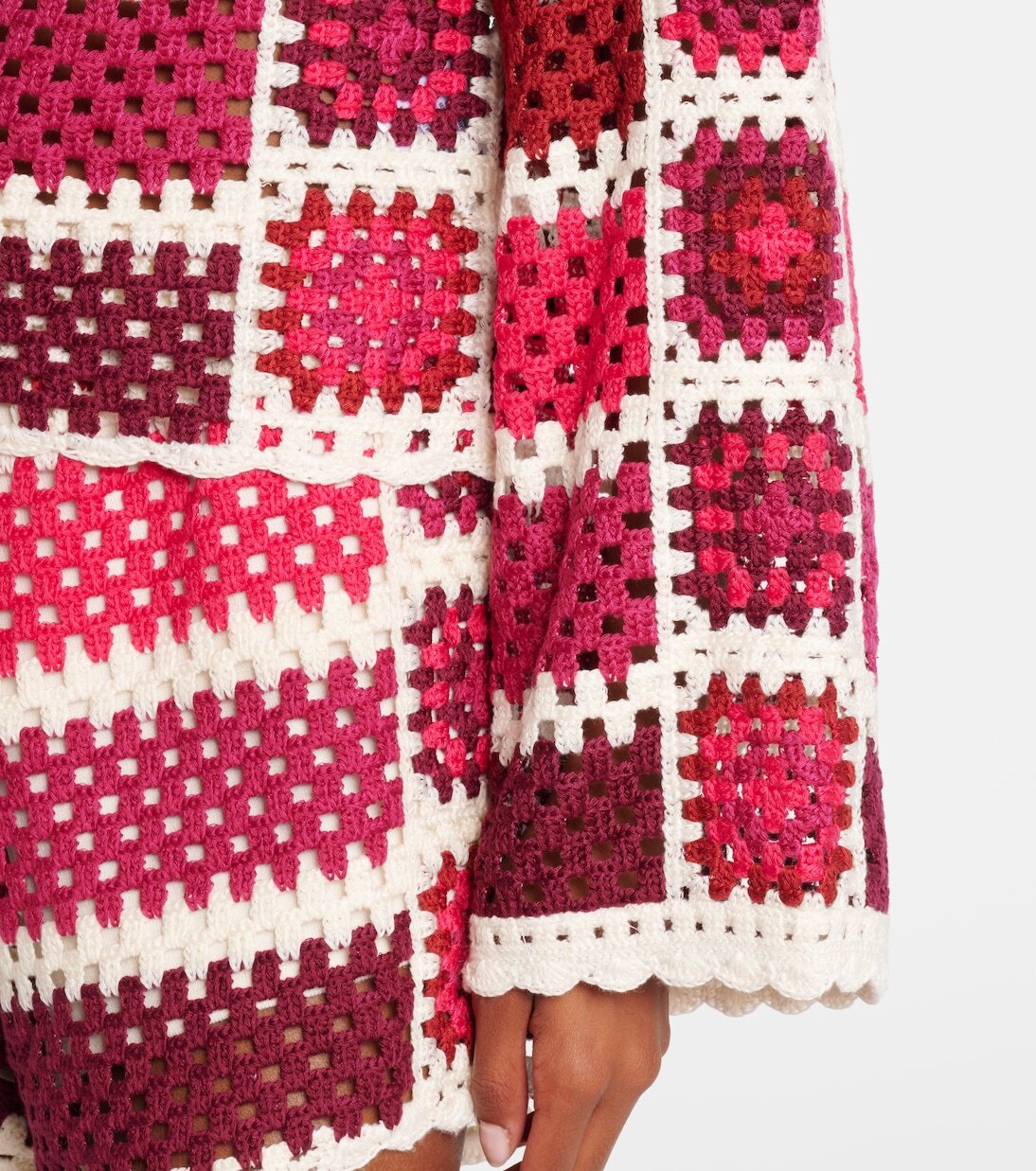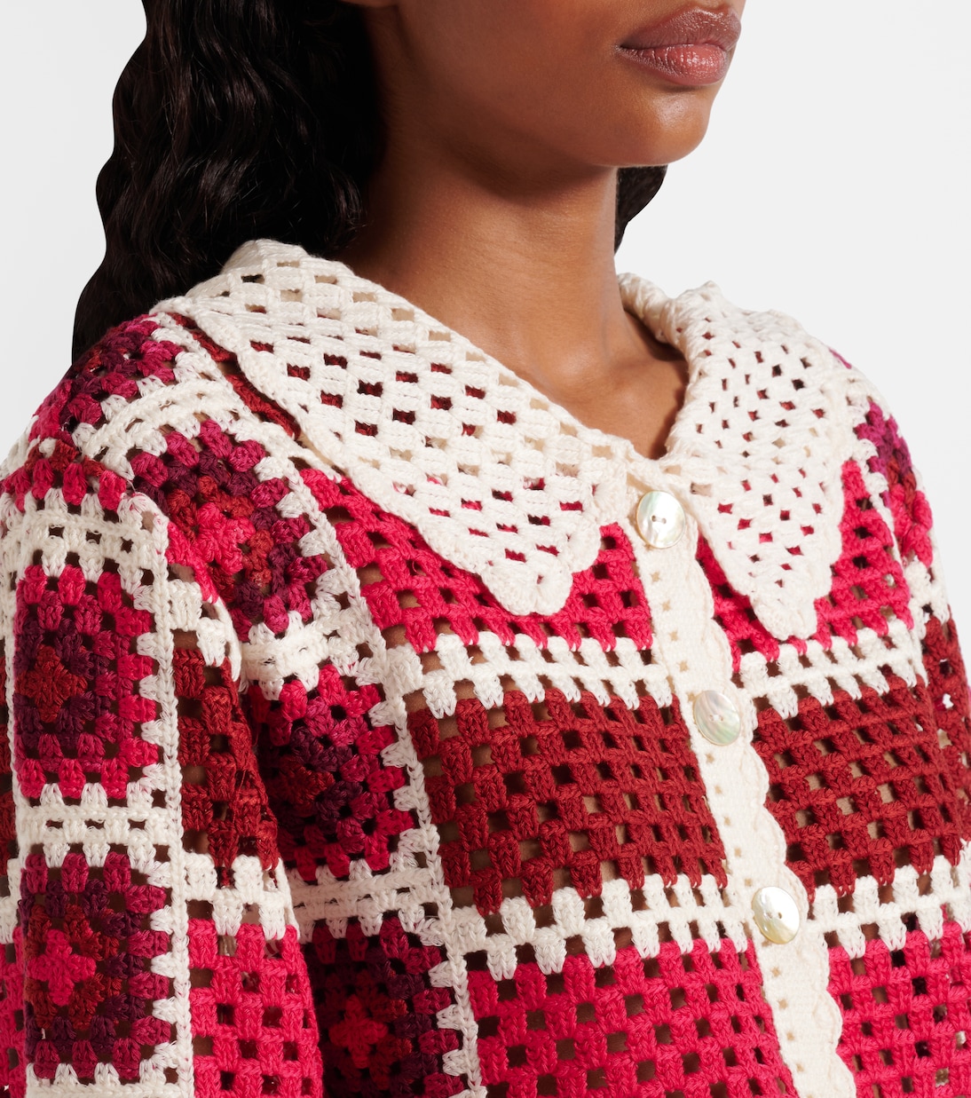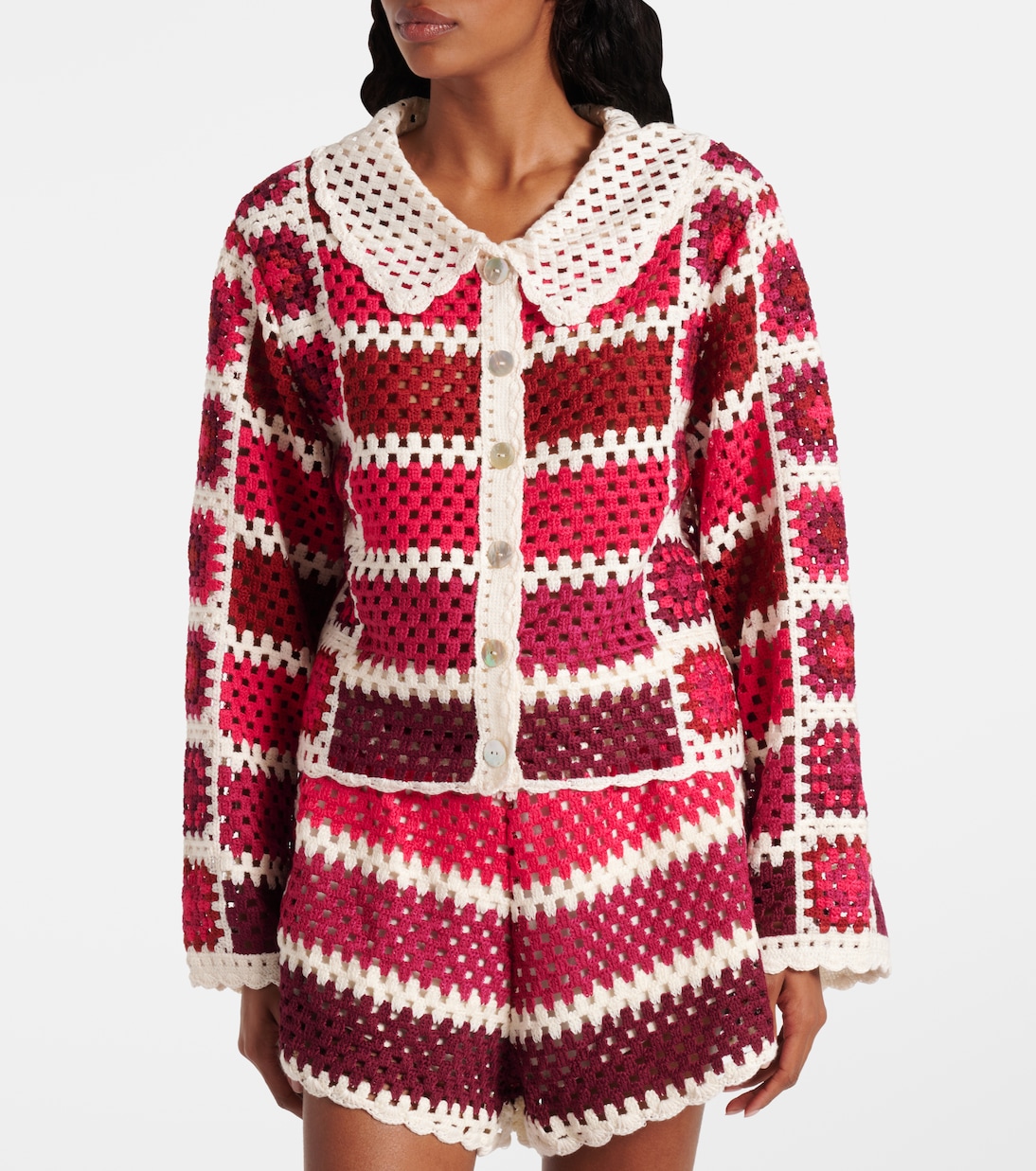 Фирменные яркие принты Farm Rio подчеркивают бразильское наследие бренда и побуждают к радостному самовыражению. Этот кардиган, связанный крючком разноцветными красками, застегивается спереди на пуговицы и дополнен воротником Питер Пэн.