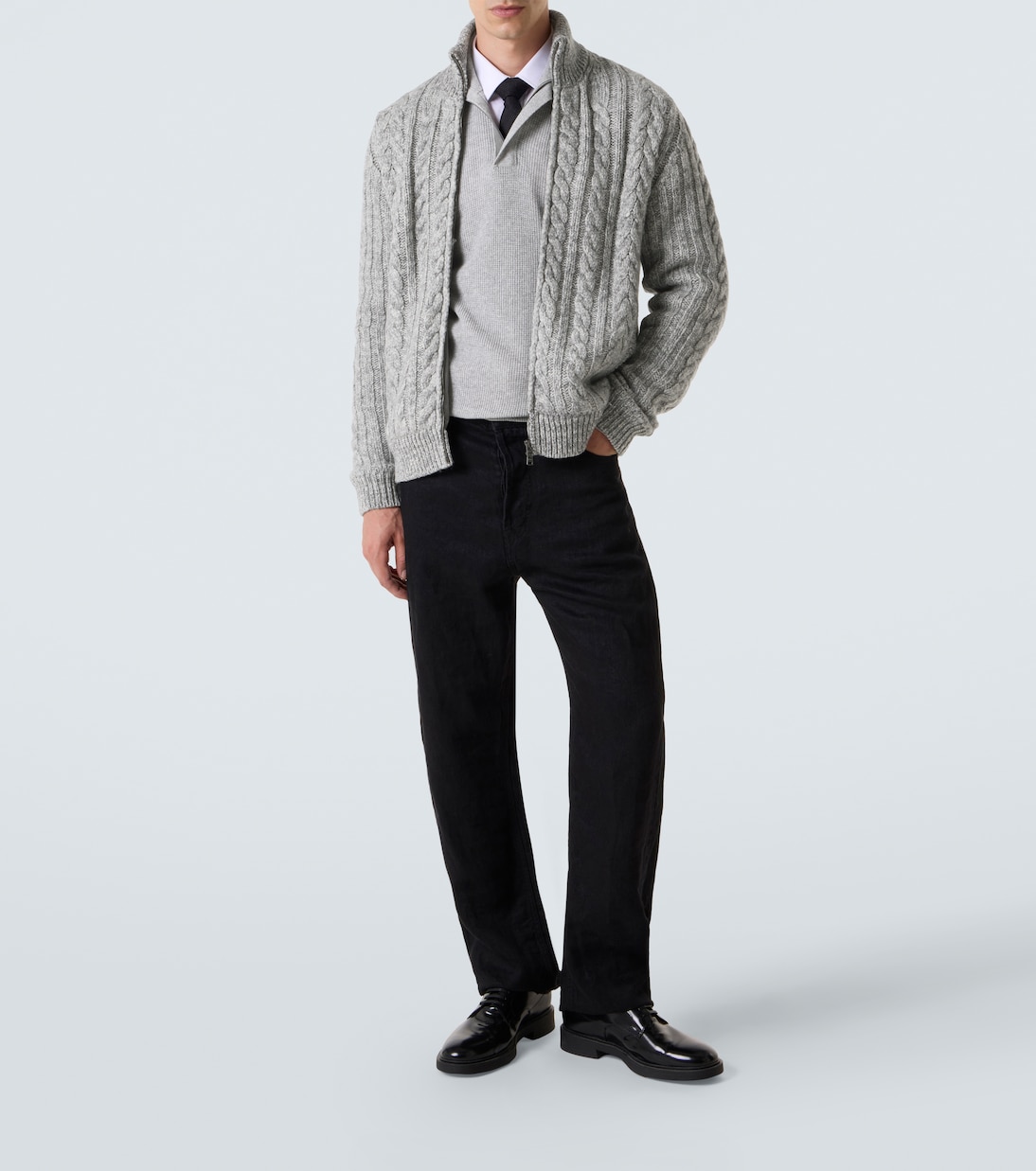 Функциональность, инновации и точность лежат в основе философии Herno. Эта куртка связана спицами исключительно из шерсти серого оттенка и имеет застежку-молнию серебристого тона и высокий вырез горловины.