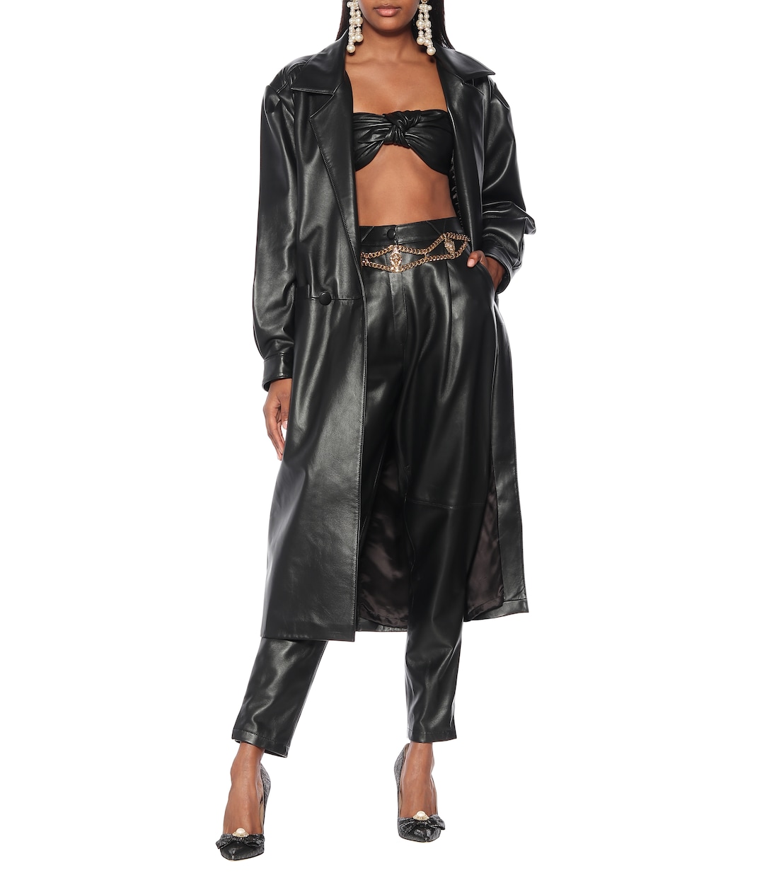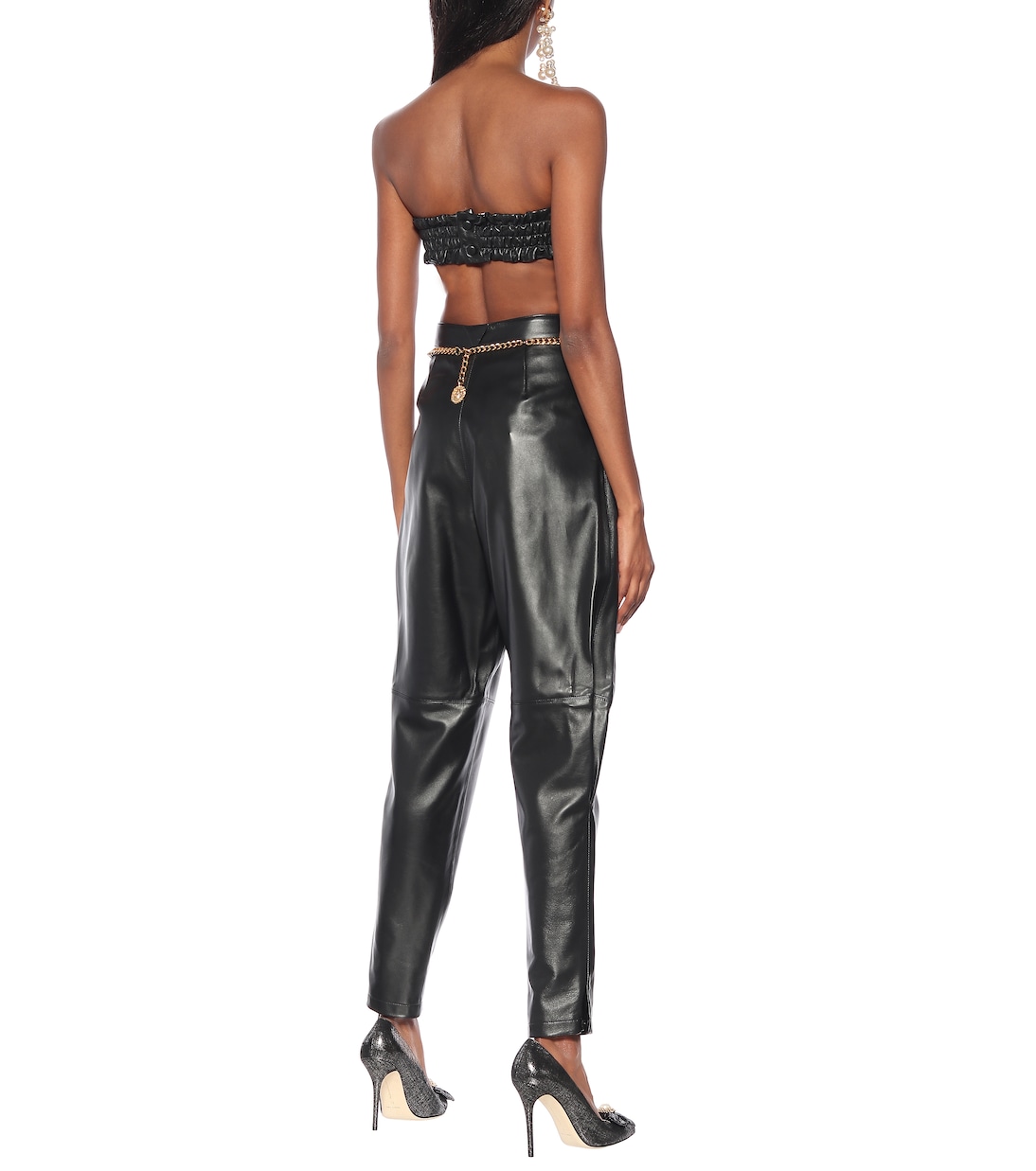 Хотя бралетты чаще всего носят в теплые месяцы, этот черный вариант был надет под длинное пальто в осеннем лукбуке Алессандры Рич 2020 года, что демонстрирует его потенциал для круглогодичного ношения. Сделано в Италии из мягкой как масло кожи ягненка, силуэт бандо определяется узлом посередине.