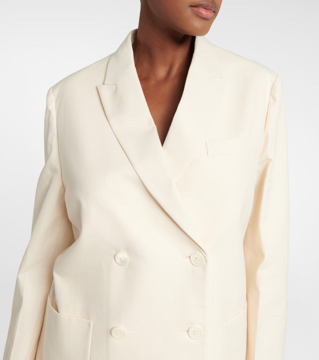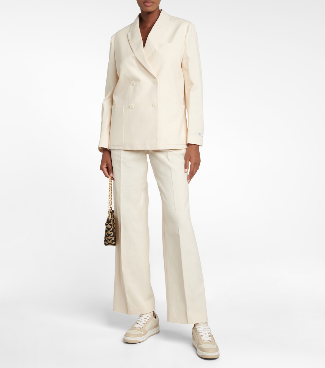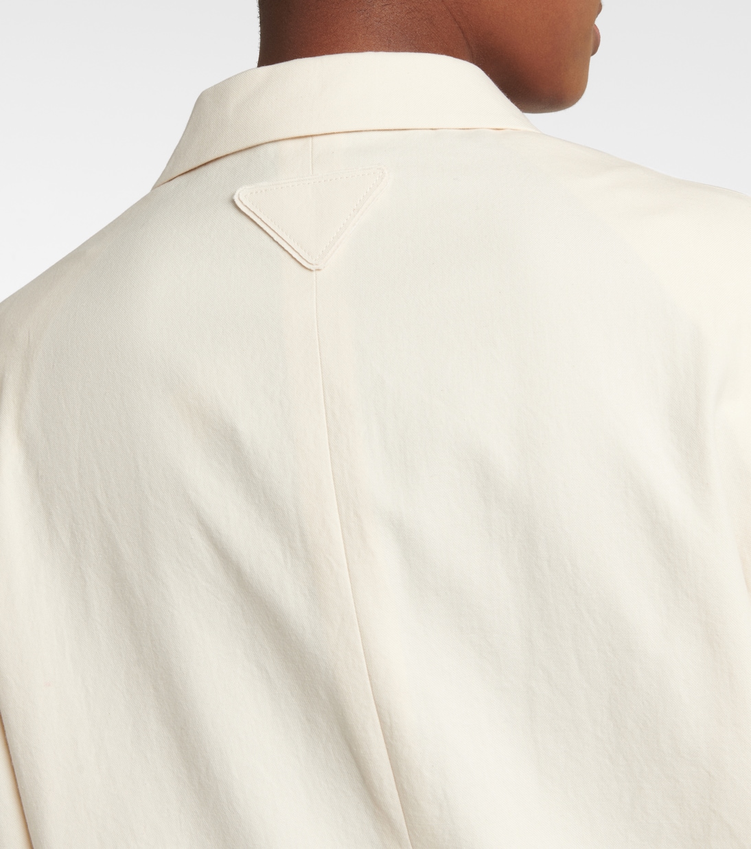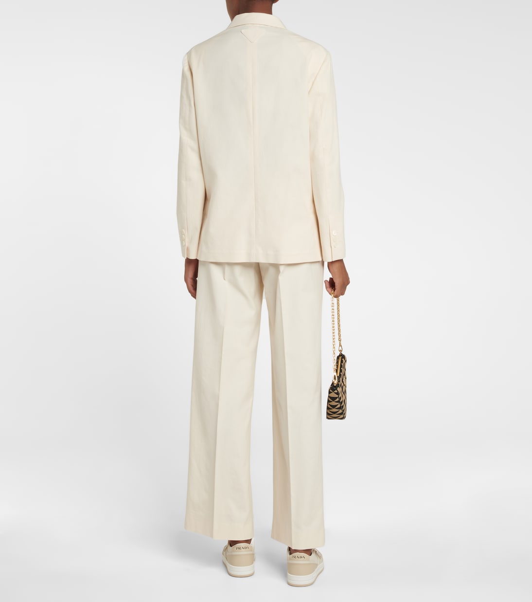 Чистый хлопковый блейзер Prada - образец простоты и свободного кроя, неподвластного времени. Изготовленный в Италии и представленный в кремовом цвете, этот двубортный фасон отличается элегантными накладными карманами и перламутровым передом с пуговицами.