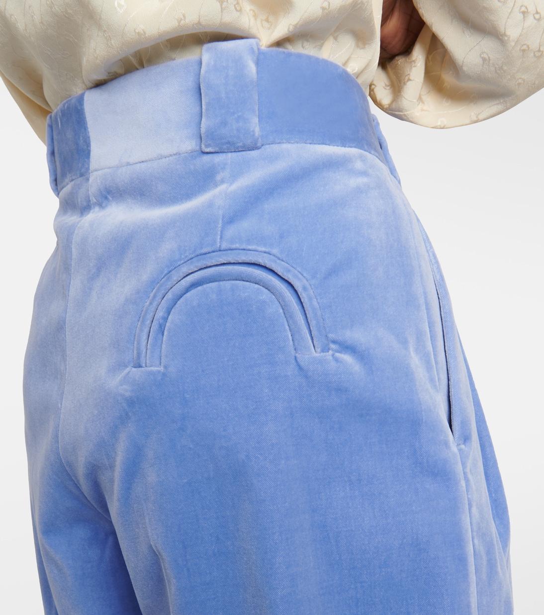 Шорты Fell от Blazé Milano, являющиеся ключевой моделью рабочей одежды для теплого времени года, сшиты из бархата освежающего оттенка. Они имеют свободный крой со складками и высокую талию со скрытой планкой.