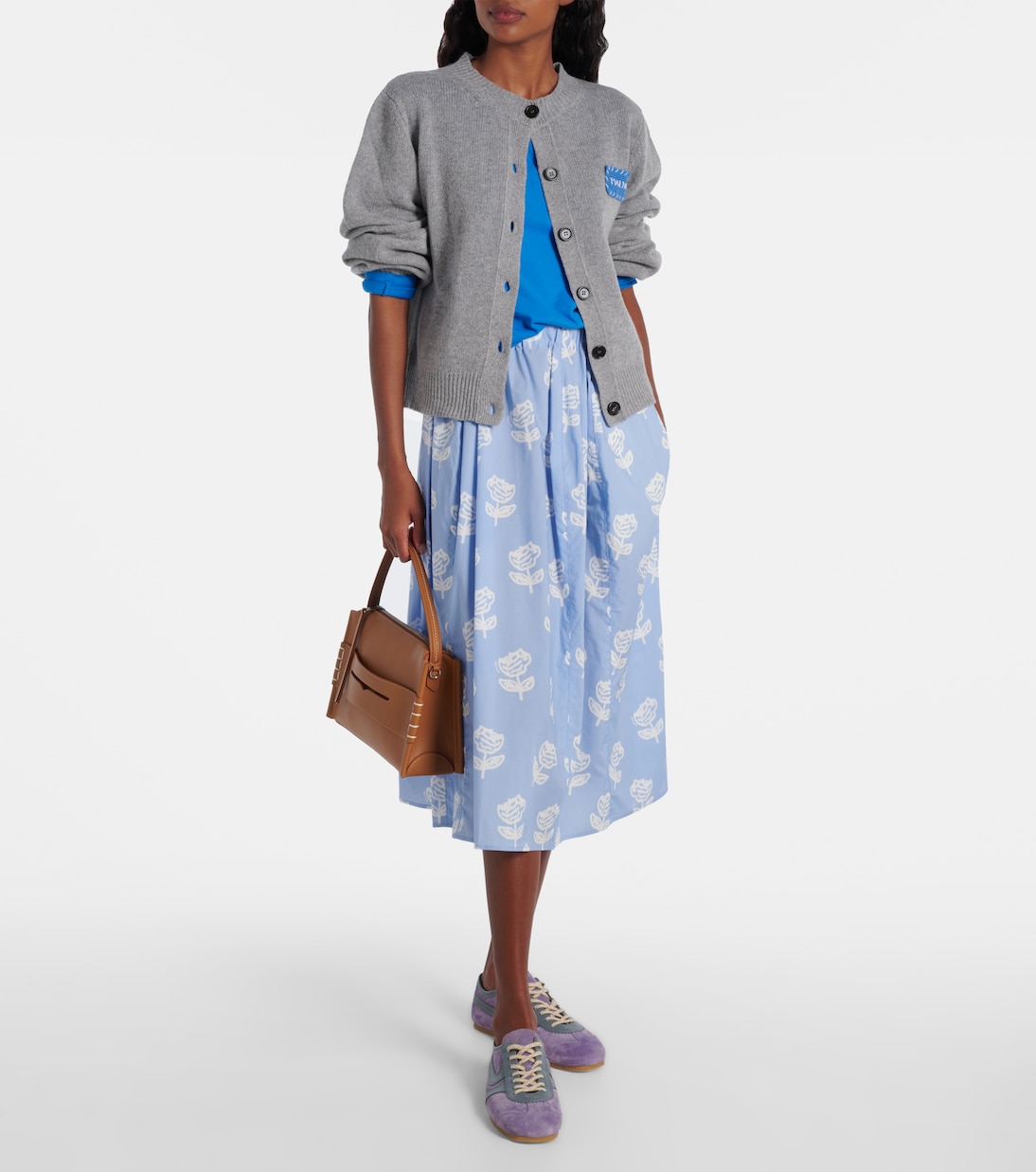 Экспериментальный подход к формам и узорам - краеугольный камень эксцентричной эстетики Marni. Этот кашемировый кардиган представляет собой переосмысление классического дизайна в современной интерпретации с рукавами-фонариками и нашивкой с логотипом, прикрепленной вручную на груди.