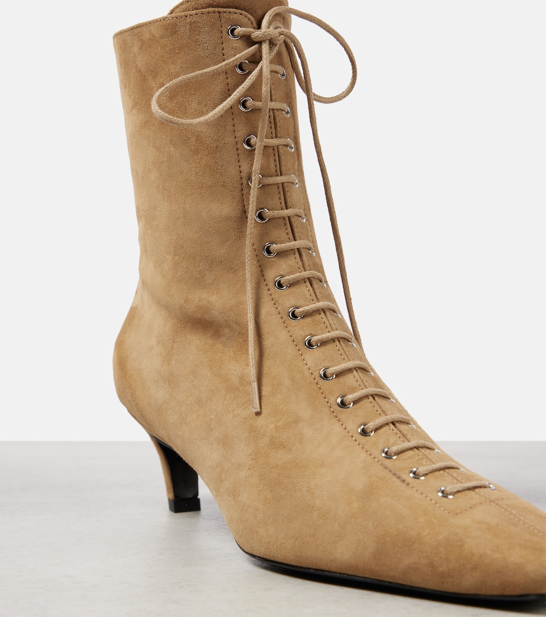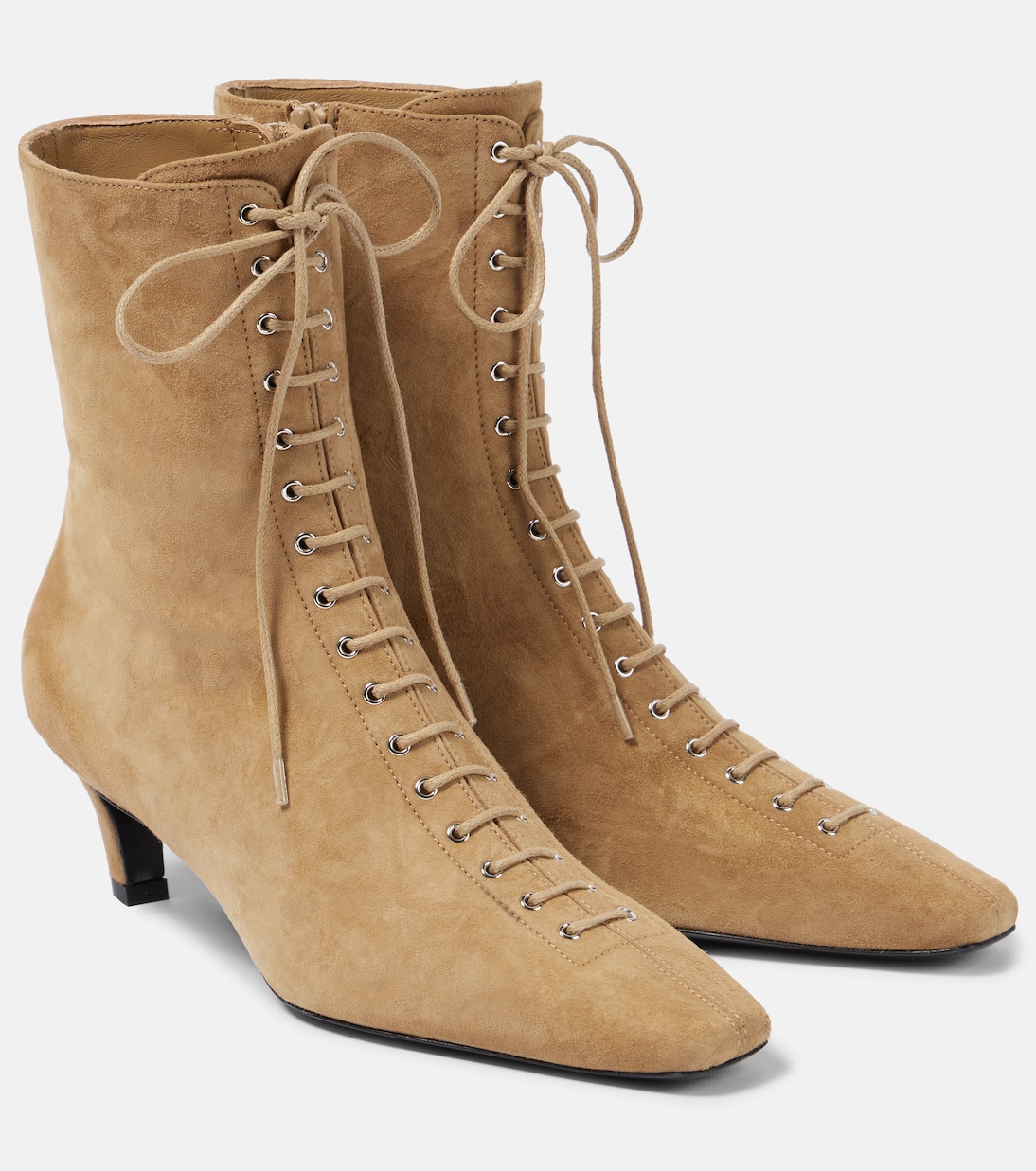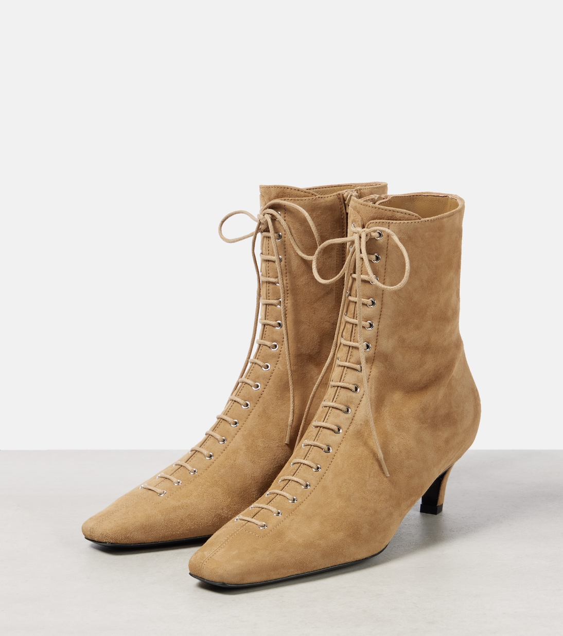 Элегантные и современные, эти ботильоны от Toteme украшены декоративной шнуровкой по всему верху. Они изготовлены из мягкой замши с гладкими квадратными носками и боковыми молниями для удобства надевания.