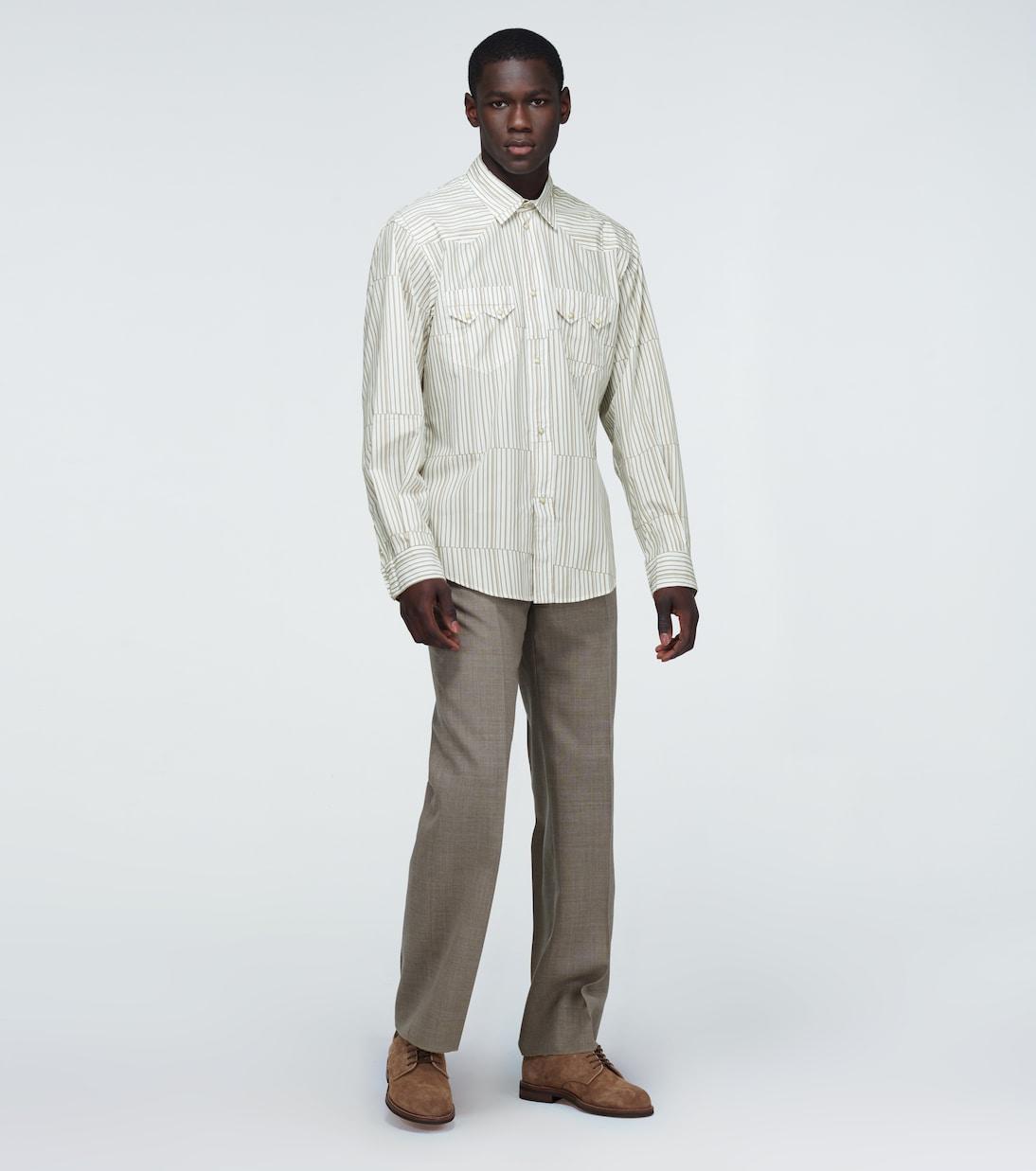 Эта белая рубашка с длинными рукавами от Phipps с рисунком в полоску Tectonic коричневого цвета по всей поверхности выполнена из хлопка с контрастными вставками и накладными карманами на кнопках спереди.