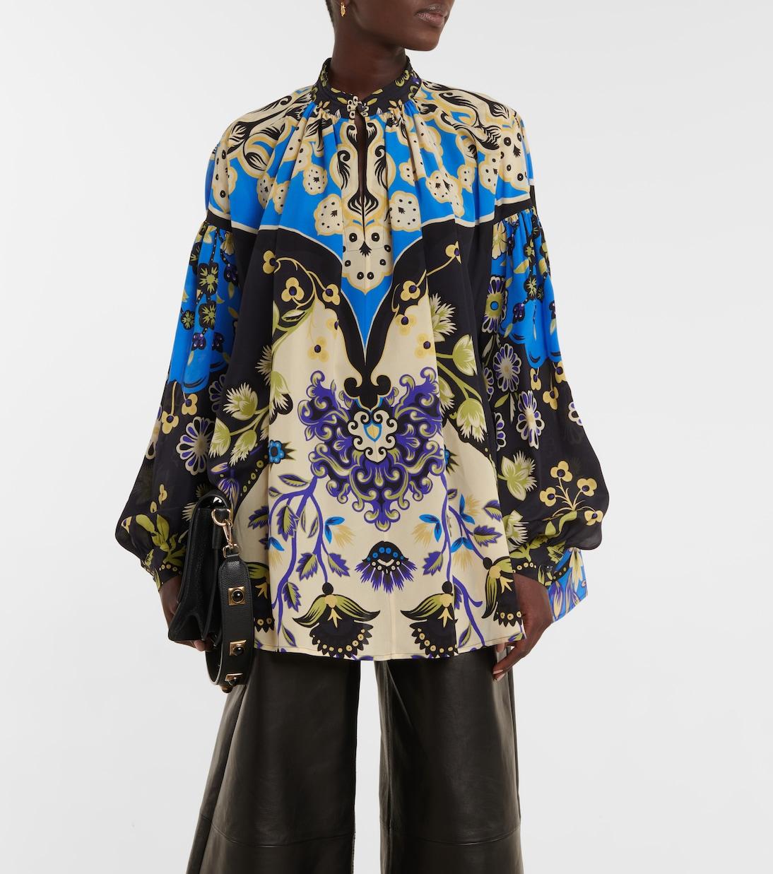 Эта блузка выполнена в фирменном стиле Etro и украшена одним из богато украшенных принтов бренда. Изготовлено из чистого шелка и слегка свободного кроя, эта плиссированная модель дополнена рукавами-фонариками и воротником-стойкой.