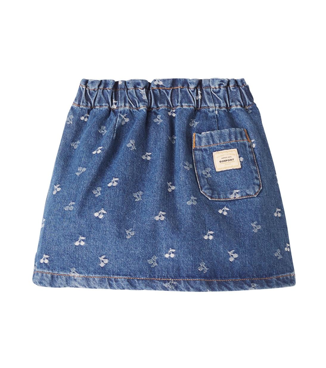 Эта джинсовая юбка от Bonpoint с эластичной талией и косыми карманами украшена фирменным логотипом в виде вишни. Этот логотип вдохновлен семейным поместьем основателей компании в Экс-ан-Провансе, очаровательно расположенным среди вишневых деревьев.
