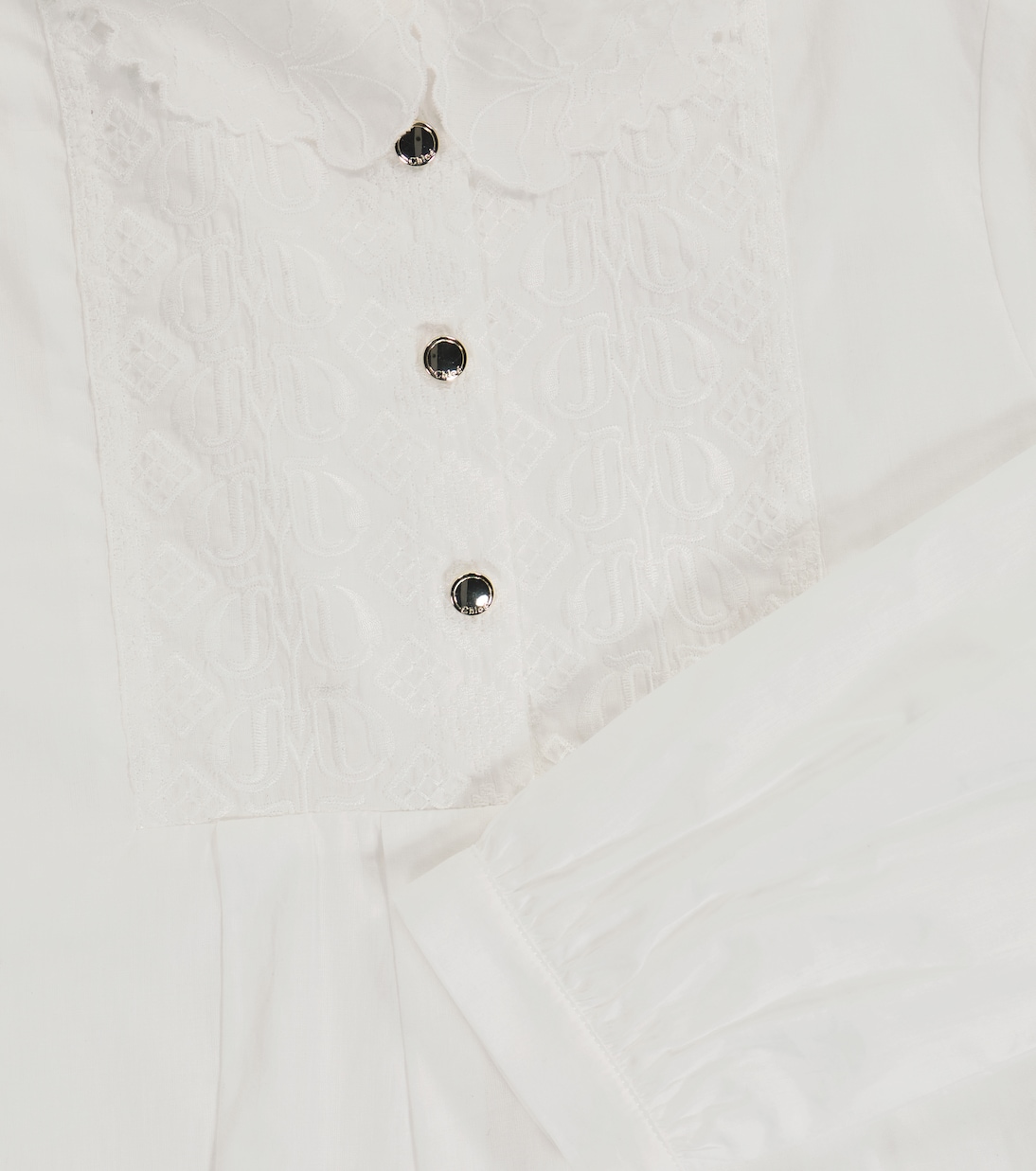 Эта классическая белая блузка от Chloé Kids украшена изящным кружевом на воротнике и кокетке, а также застежкой на блестящие золотистые пуговицы. Модель выполнена из хлопка, имеет длинные рукава и текстурную плиссировку.