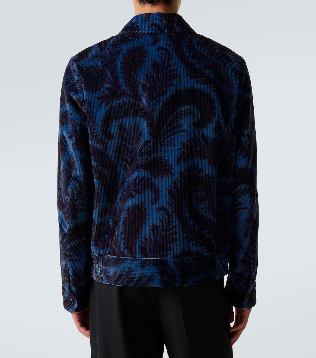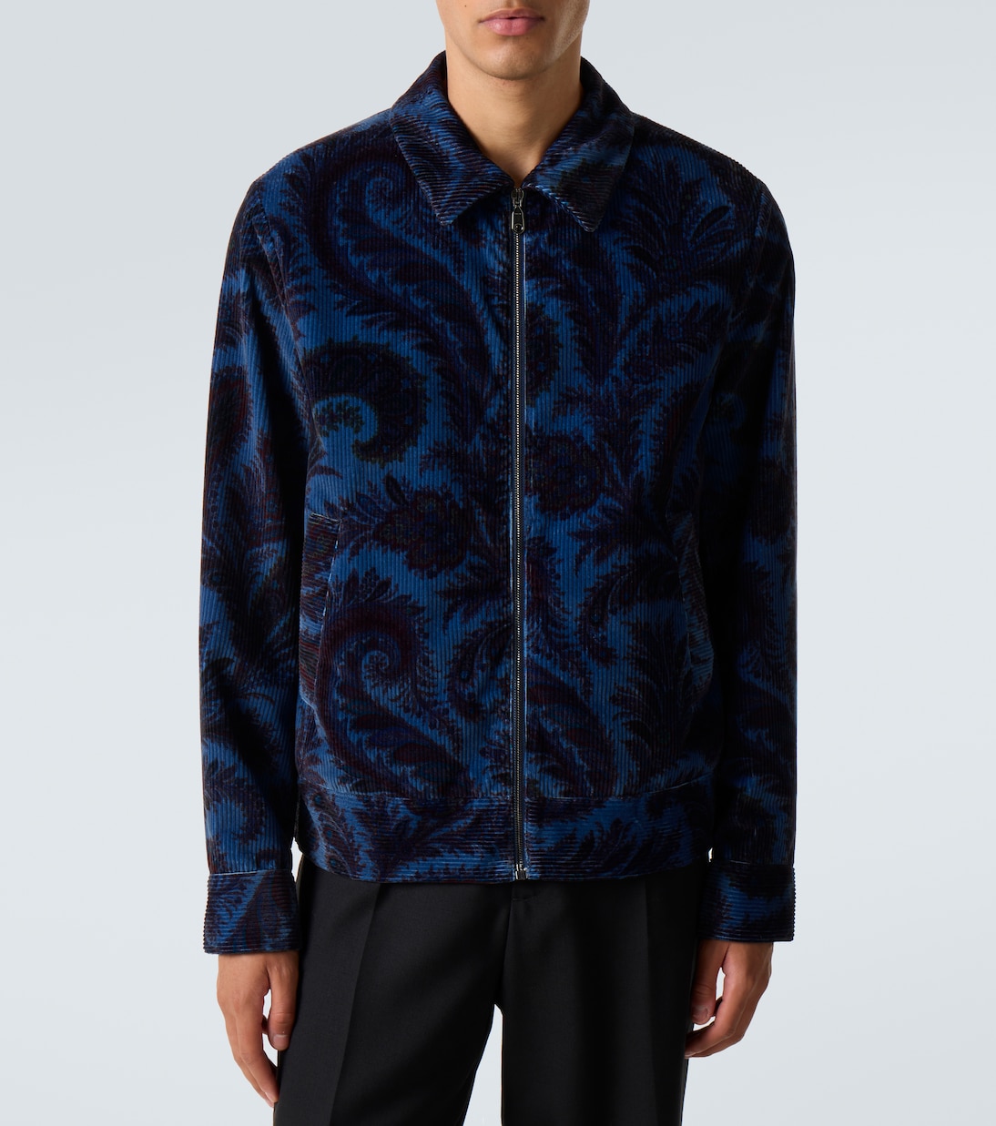Эта куртка Etro украшена принтом, вдохновленным листвой, по всей поверхности. Изготовлено из мягкого хлопкового бархата, имеет классический крой и включает в себя классический воротник, прорезные карманы по бокам и застежку-молнию спереди.