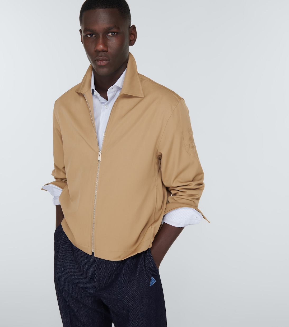 Эта куртка от Lanvin из чистой натуральной шерсти с легкой ручкой имеет классический воротник, молнию спереди и вышитый гербовый логотип на одном рукаве.