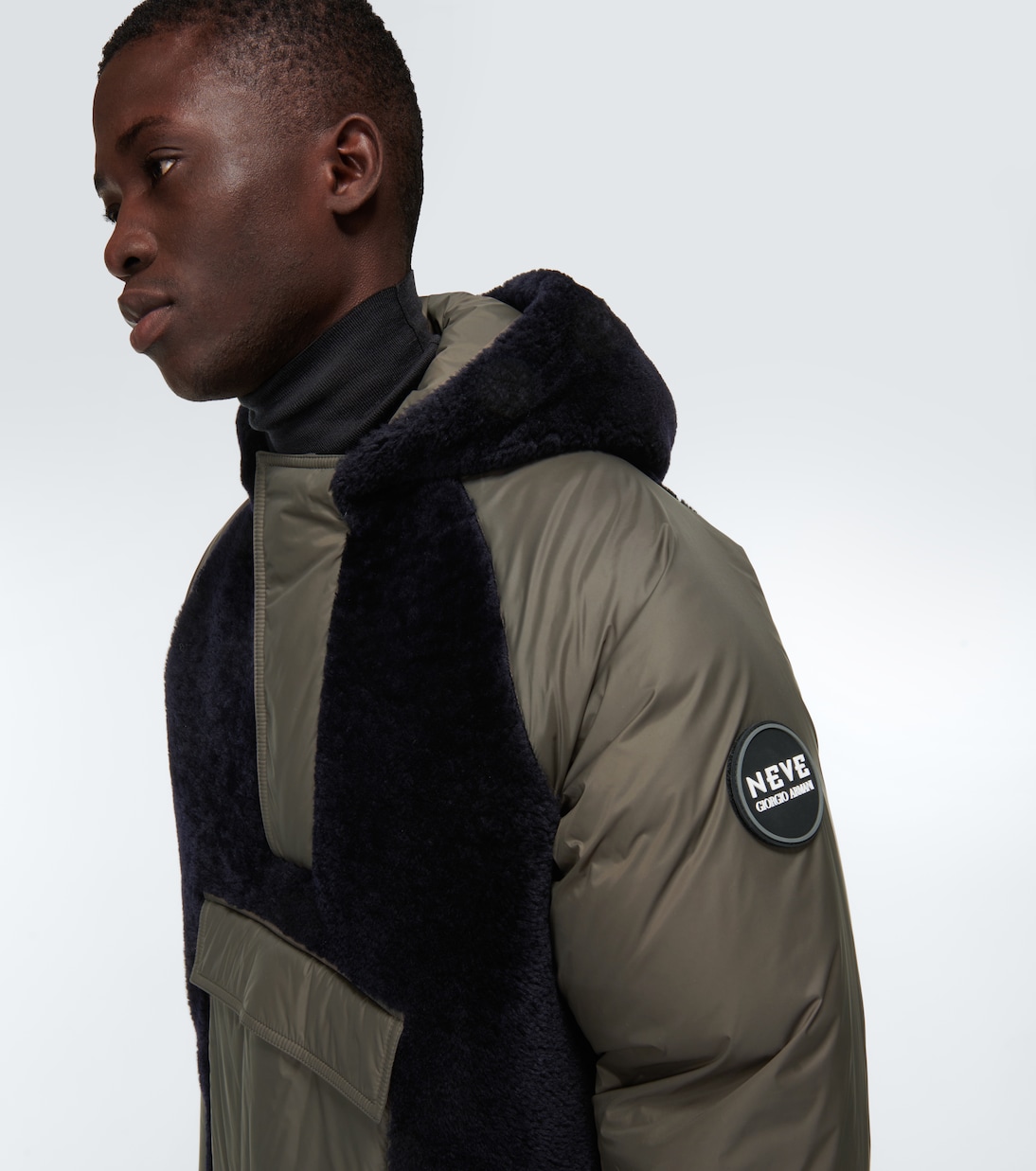 Эта куртка с капюшоном от Giorgio Armani, подходящая как для города, так и для активного отдыха, изготовлена из прочной мембранной ткани, отделана плюшевой овчиной и дополнена большим накладным карманом спереди.