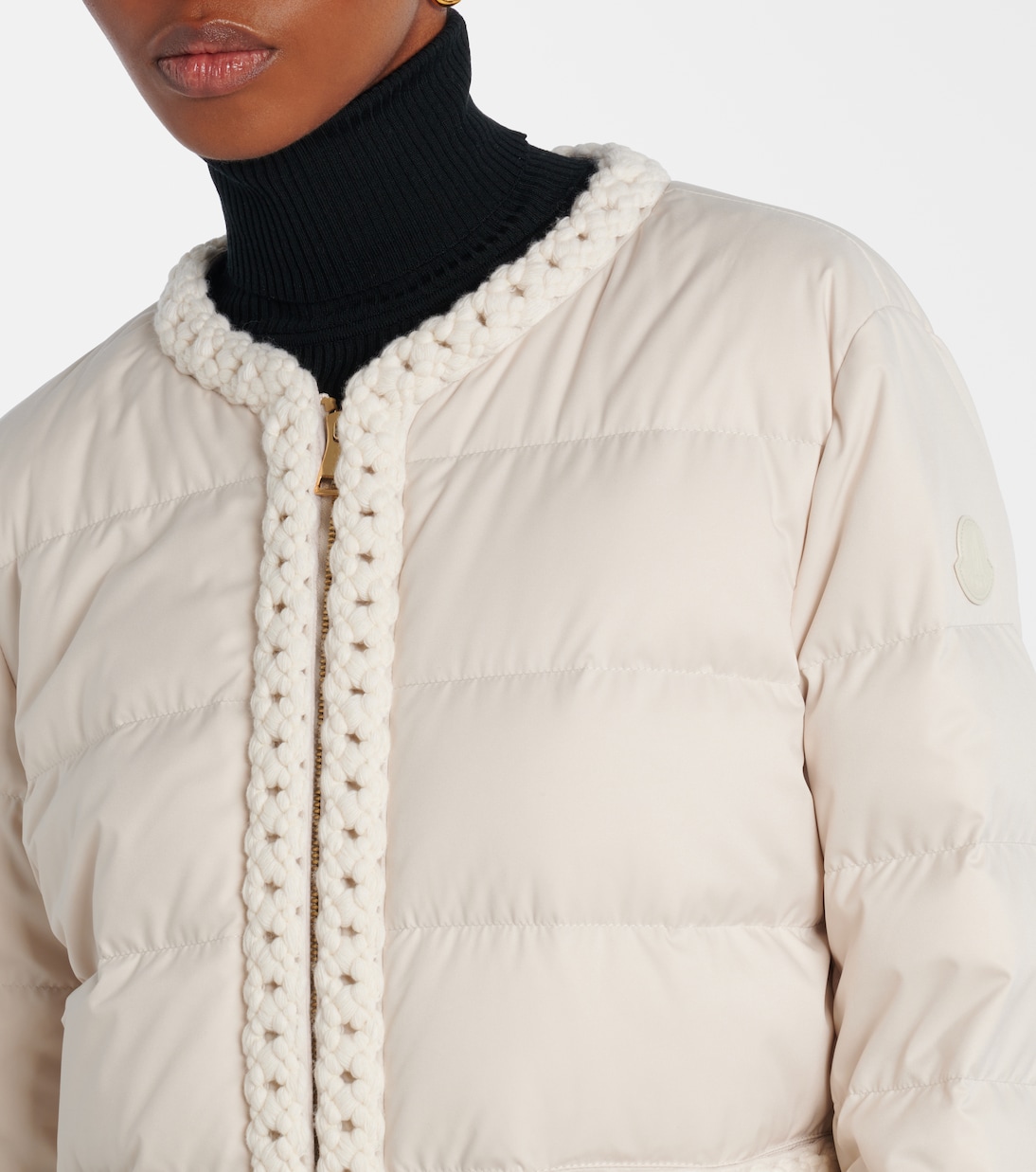 Эта куртка стеганая и пуховая для максимального тепла, а также дополнена тональными плетеными отделками. Весь пух Moncler, закупаемый исключительно у сертифицированных DIST поставщиков, получен от гусей, выращенных на фермах, в качестве побочного продукта пищевой промышленности.