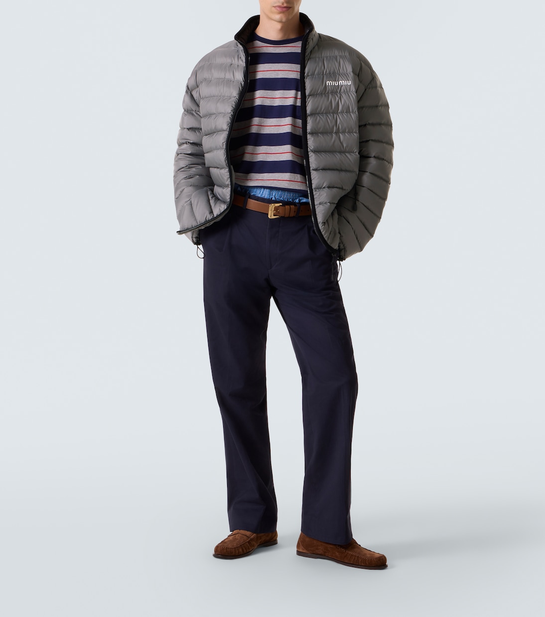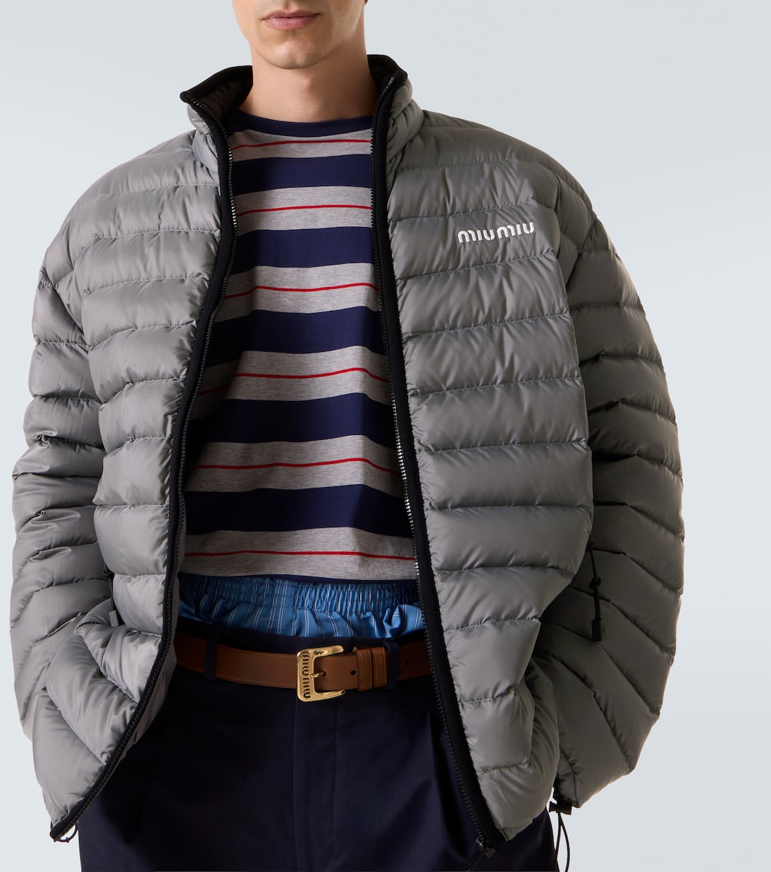 Эта легкая пуховая куртка воплощает в себе бунтарский дух Miu Miu. Изготовленная из флиса и тонкого эпонжа, эта модель со вставками сочетает в себе комфорт и функциональность.