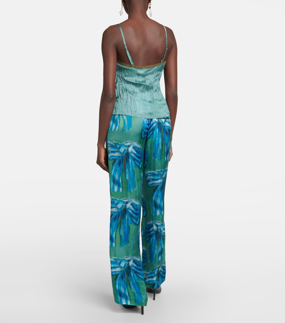 Эта майка от Acne Studios украшена принтом в виде банта, разработанным Карен Килимник. Она выполнена из жатого атласа с V-образным вырезом и отделкой из тюля.