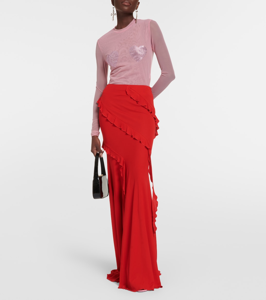 Эта макси-юбка Blumarine не только стильная, но и удобная. Она сшита в Италии из мягкого трикотажа, имеет расклешенный силуэт, облегает бедра и дополнена изящной оборкой.