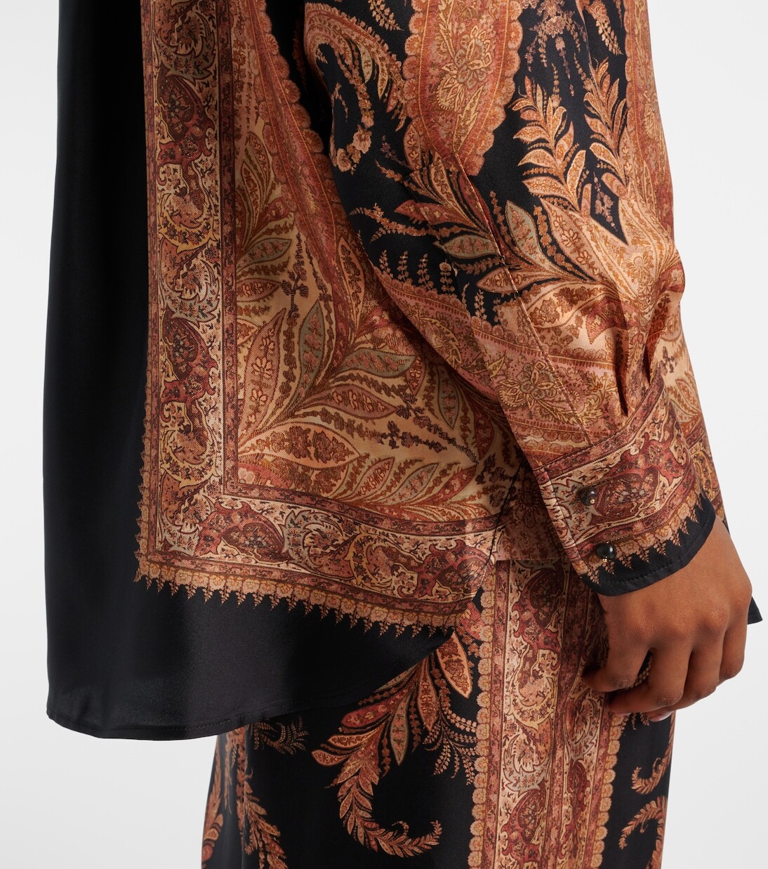 Эта рубашка из коллекции Hypnotic от Zimmermann выполнена из струящейся шелковой ткани и имеет непринужденный силуэт. Модель украшена завораживающим узором пейсли и застегивается на пуговицы спереди.