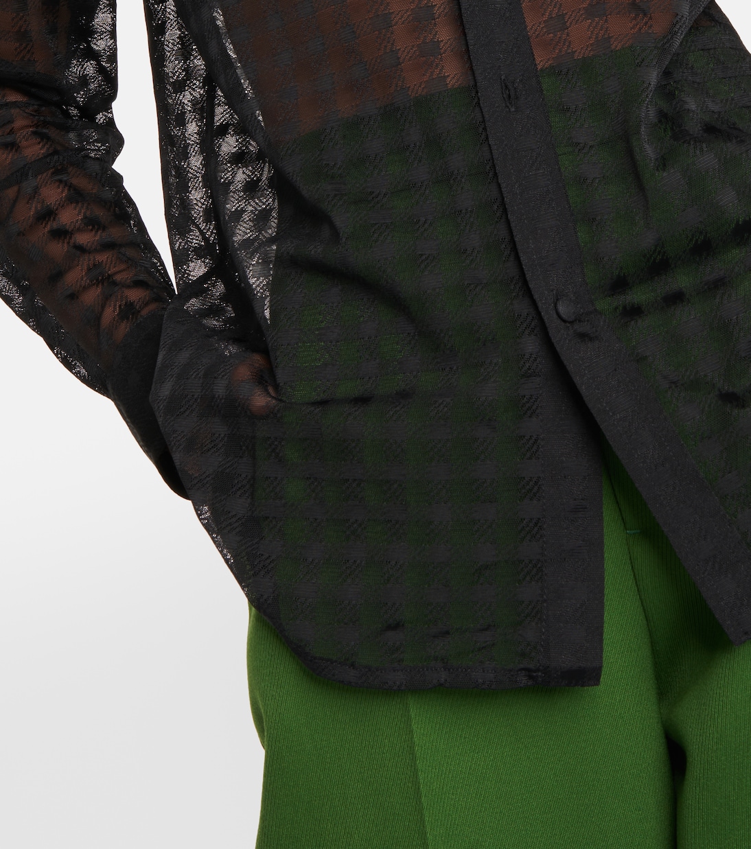 Эта рубашка от Ami Paris - современная интерпретация классического стиля, которая выглядит непринужденно шикарно. Полупрозрачный фасон из легкого кружева с принтом в клетку гингем по всей поверхности и классическим кроем.