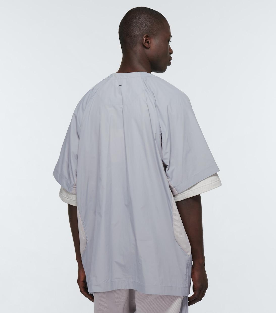 Эта рубашка от Byborre скроена из светло-серой технической ткани в свободном силуэте с большими нагрудными карманами, потайной застежкой и V-образным вырезом.