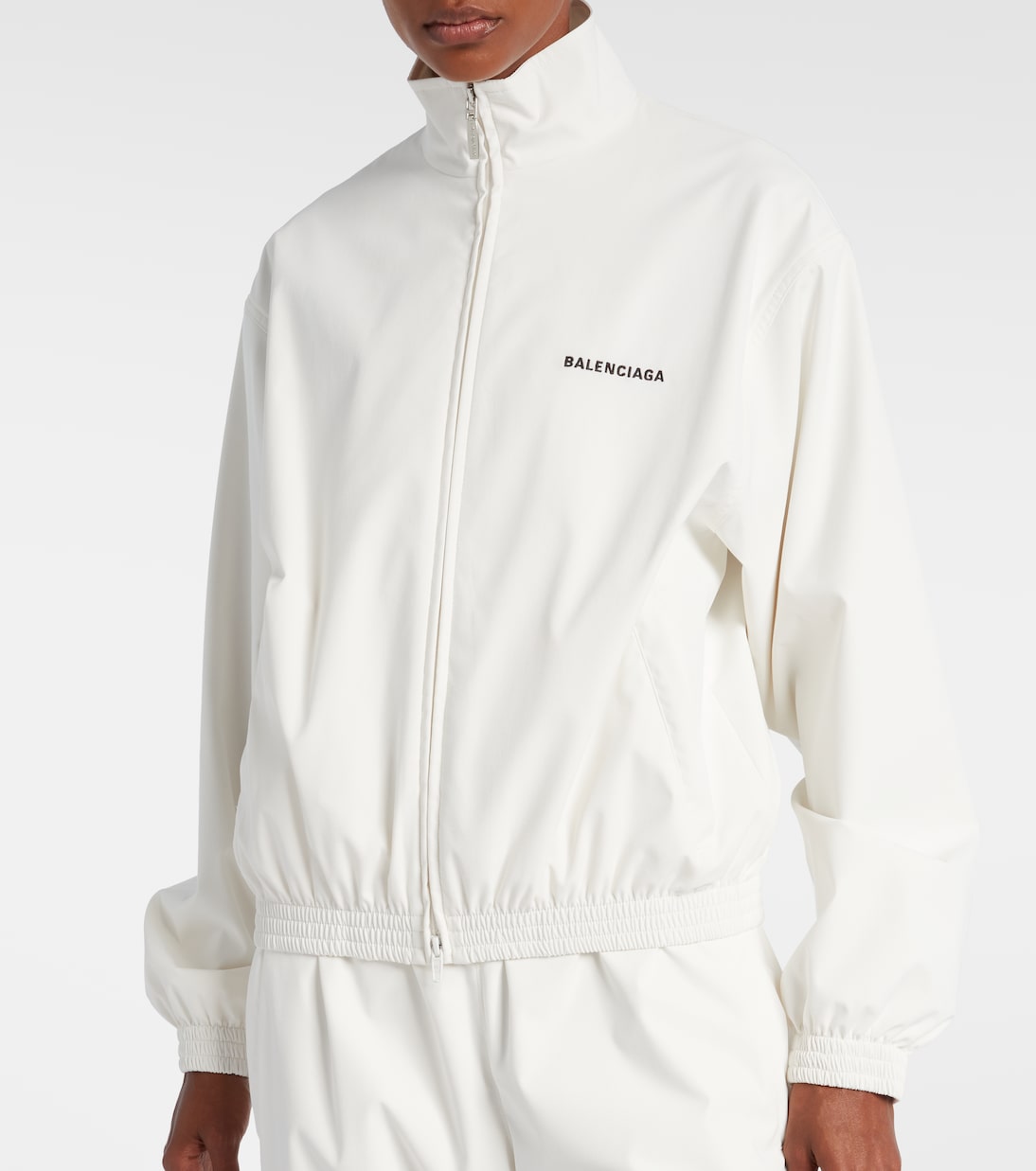 Эта спортивная куртка Balenciaga украшена логотипом спереди и сзади для мгновенной узнаваемости. Эта куртка имеет высокий воротник, эластичные манжеты и подол, а также застежку-молнию спереди.