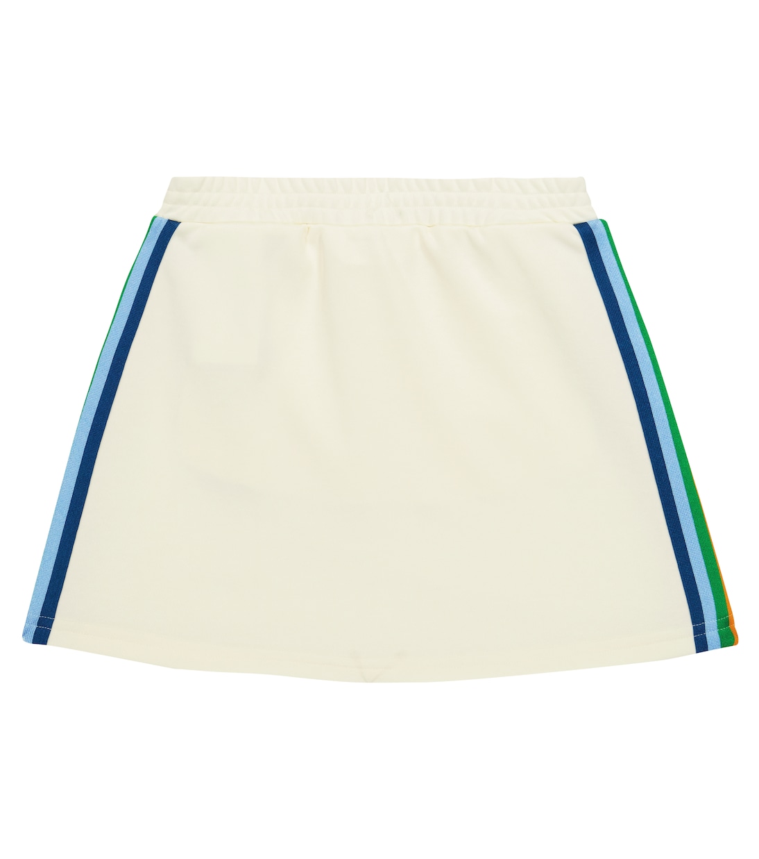 Эта спортивная юбка от Palm Angels Kids выполнена из технического трикотажа. Боковые швы с цветными полосками, ненавязчивый принт с логотипом и эластичный пояс.