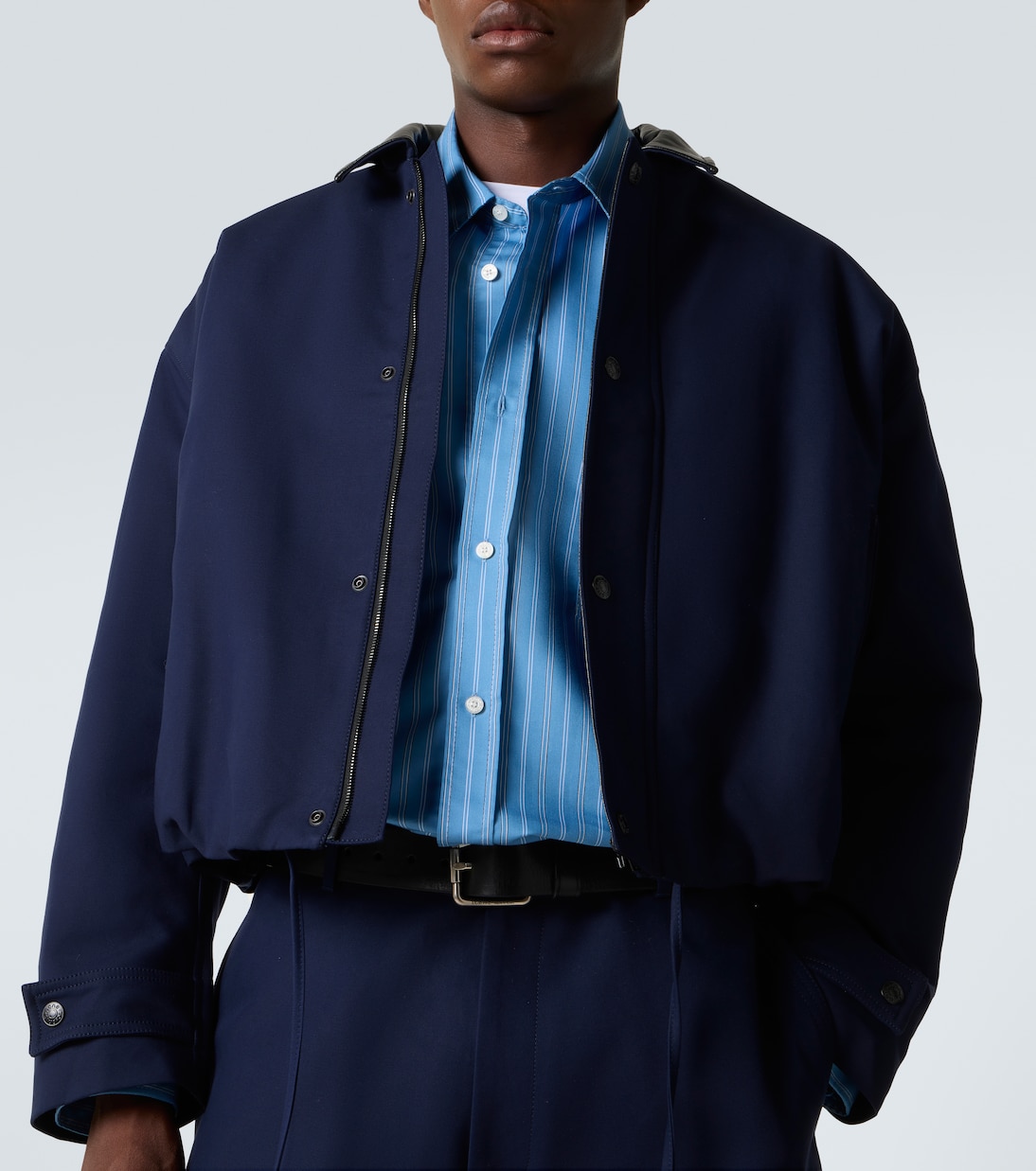 Эта темно-синяя куртка Acne Studios выполнена из гладкого хлопкового твила и дополнена контрастным кожаным воротником и кожаной нашивкой с логотипом на вырезе сзади. Этот вневременной стиль разработан с классическим, свободным кроем.