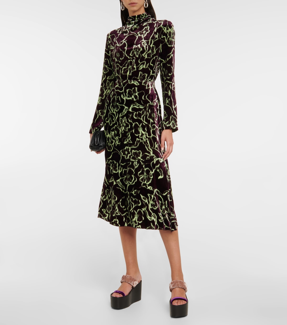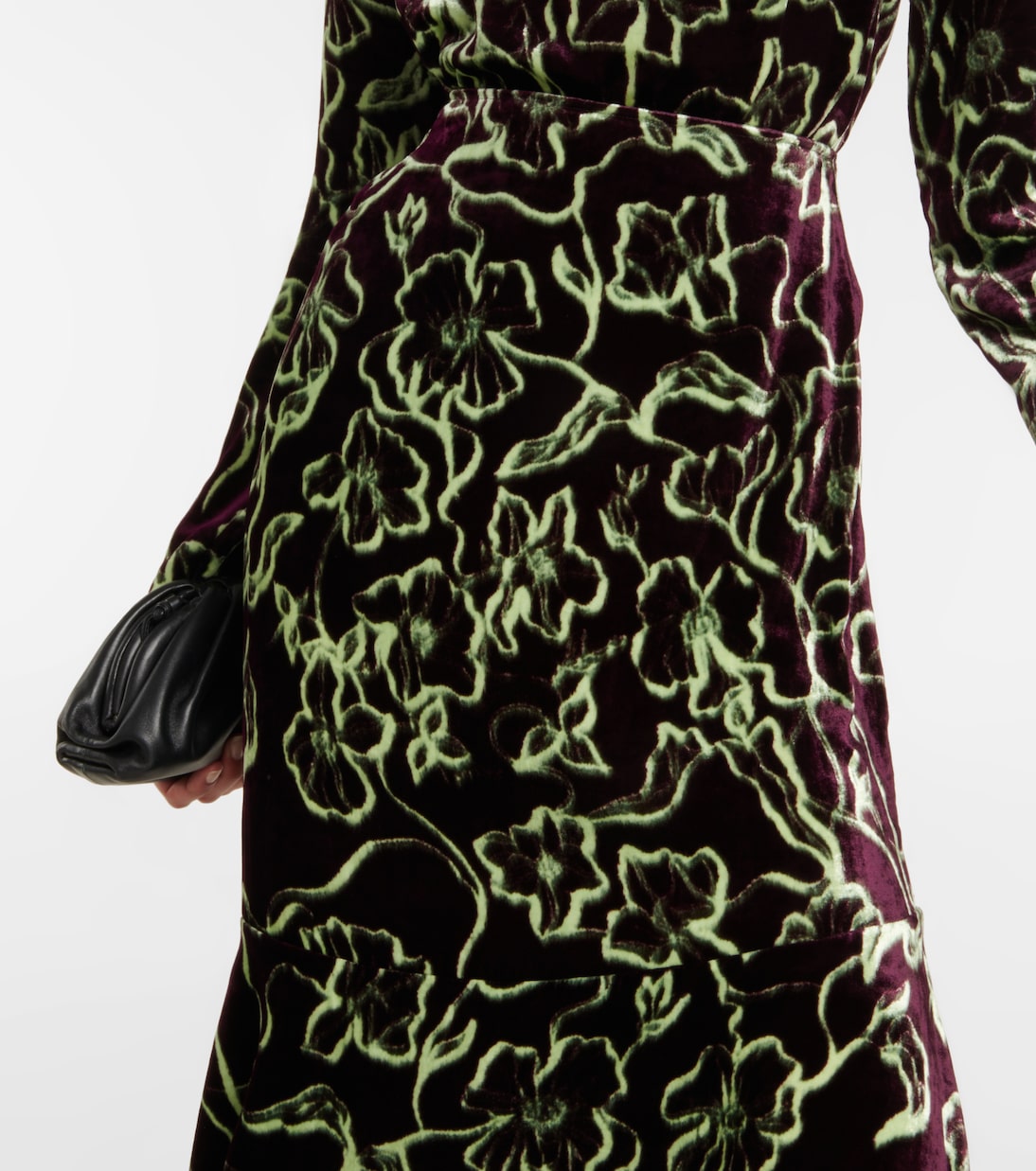 Эта юбка миди от Dries Van Noten украшена ярким абстрактным принтом. Она выполнена из мягкого шелкового бархата с гофрированным подолом.